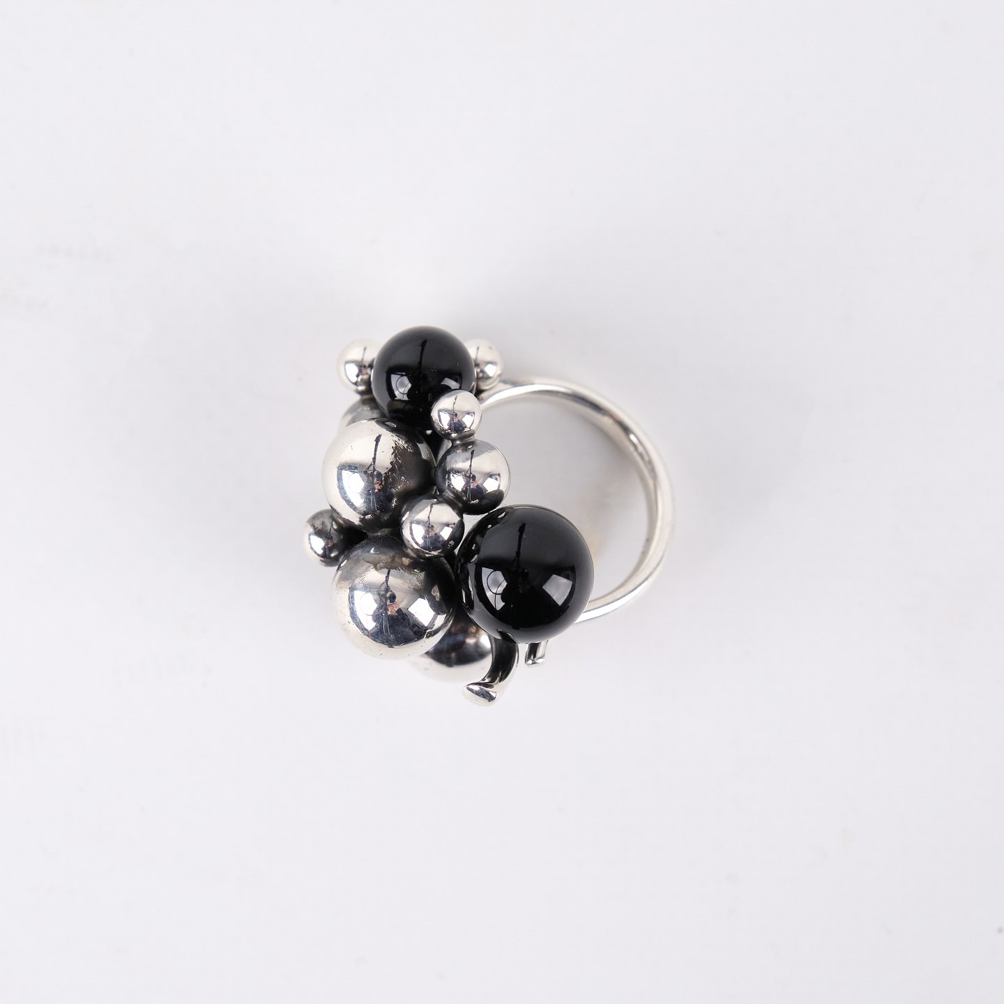 Georg Jensen ring in sterling silver, model 54 from the Moonlight Grapes collection. Features the iconic grape motif measuring 3 × 2.5 cm, showcasing the brand’s organic design language. A refined piece crafted in high quality.
