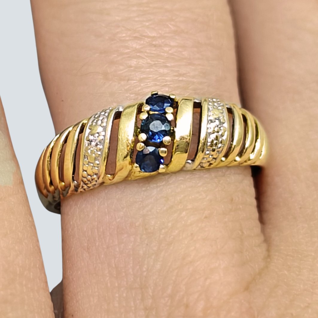 Ring i 14 kt. guld med safirer og diamanter |