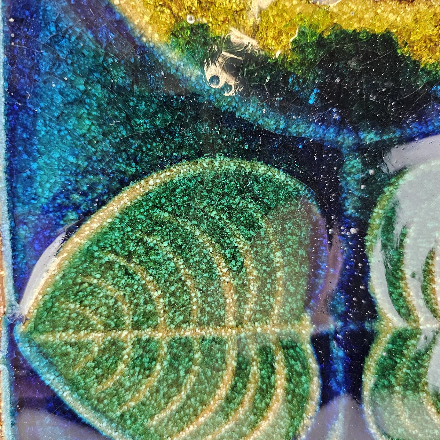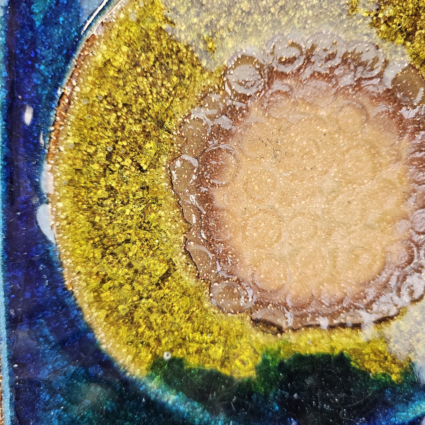 Relief i glaseret højbrændt stentøj med motiv af to blomster