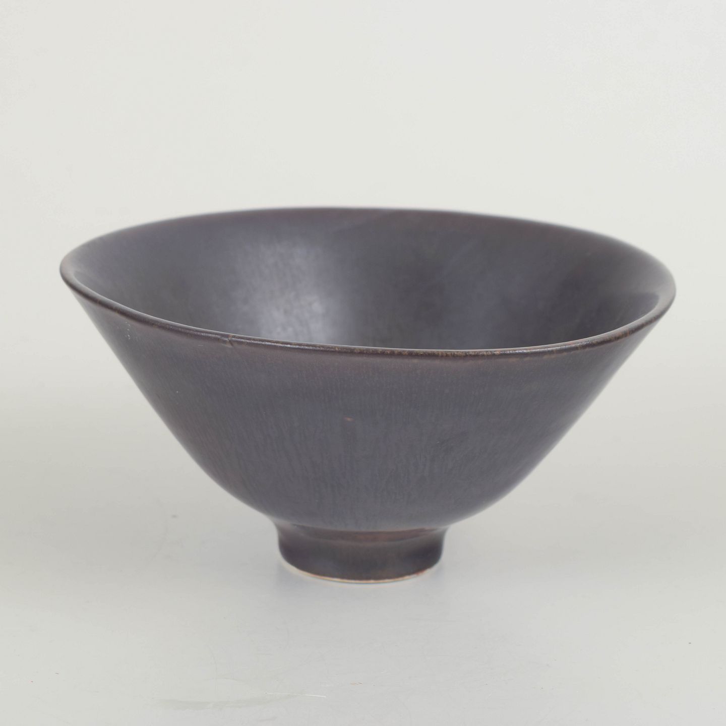 Elegant kegleformet skål i stentøj med mat, mørk glasur i gråbrune toner og diskret fod. Et fint eksempel på Stålhane’s minimalistiske formsprog og præcise proportioner.