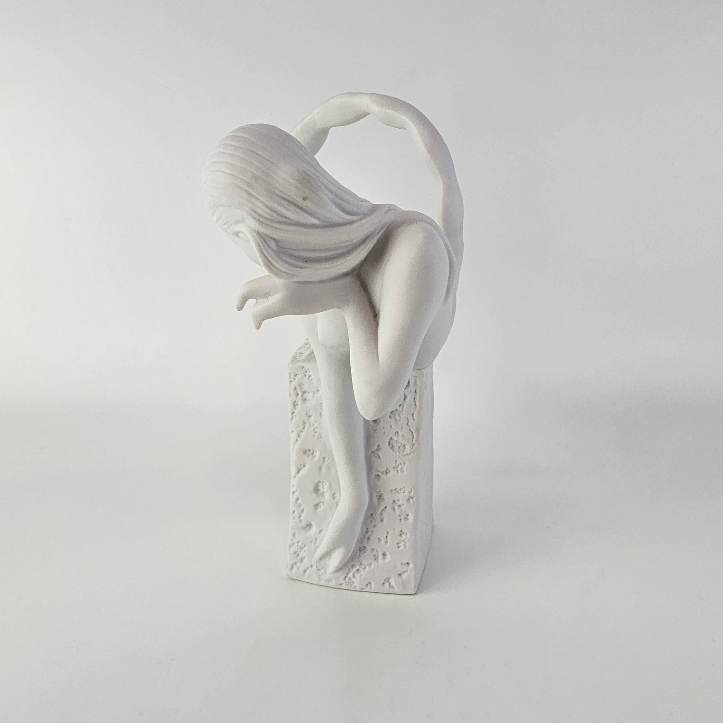 Figur i hvidt kongeligt porcelæn med motiv af stjernetegnet skorpionen og titlen Scorpio