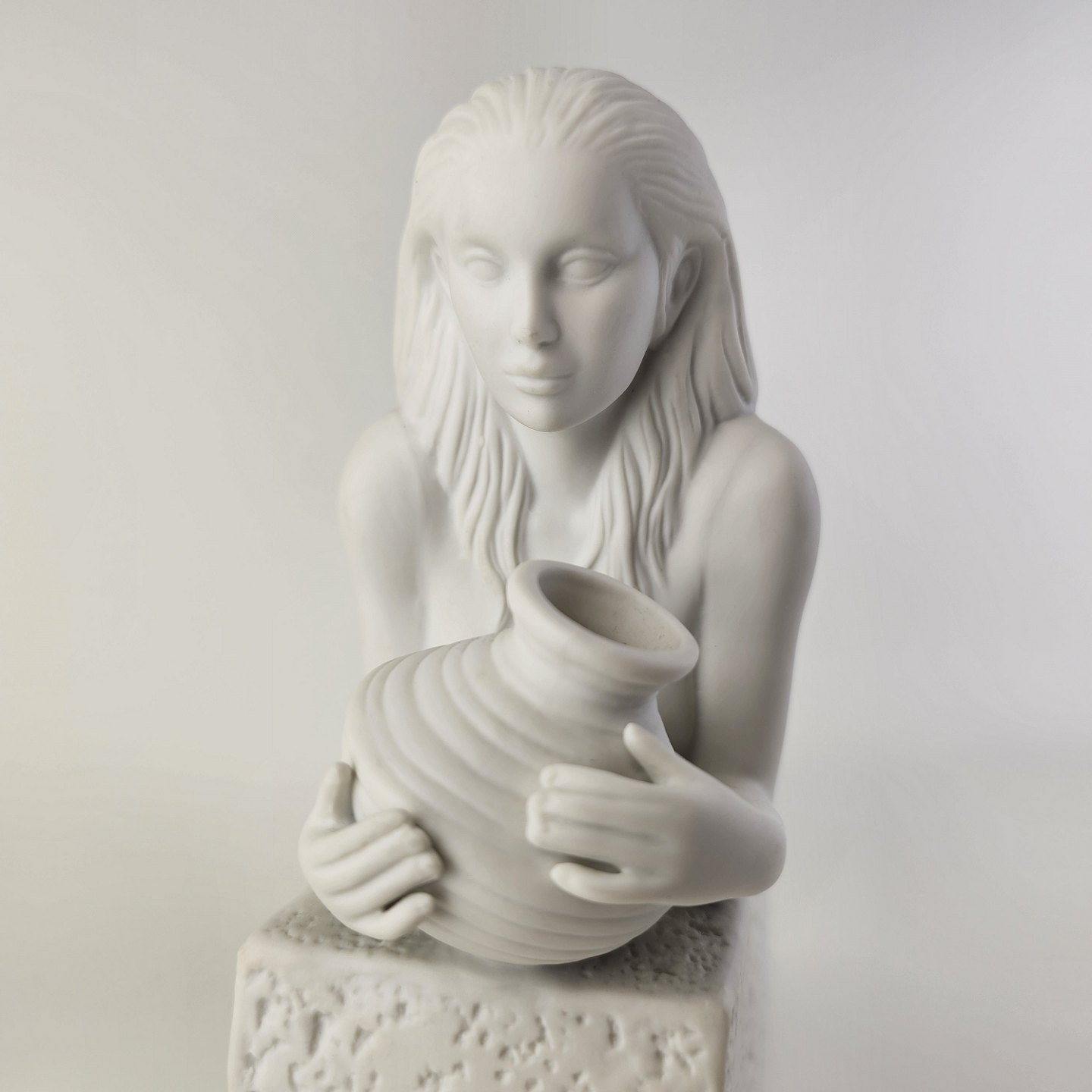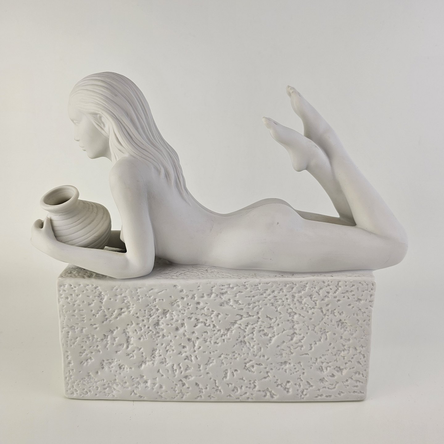 Figur i hvidt kongeligt porcelæn med motiv af stjernetegnet vandbæreren og titlen Aquarius