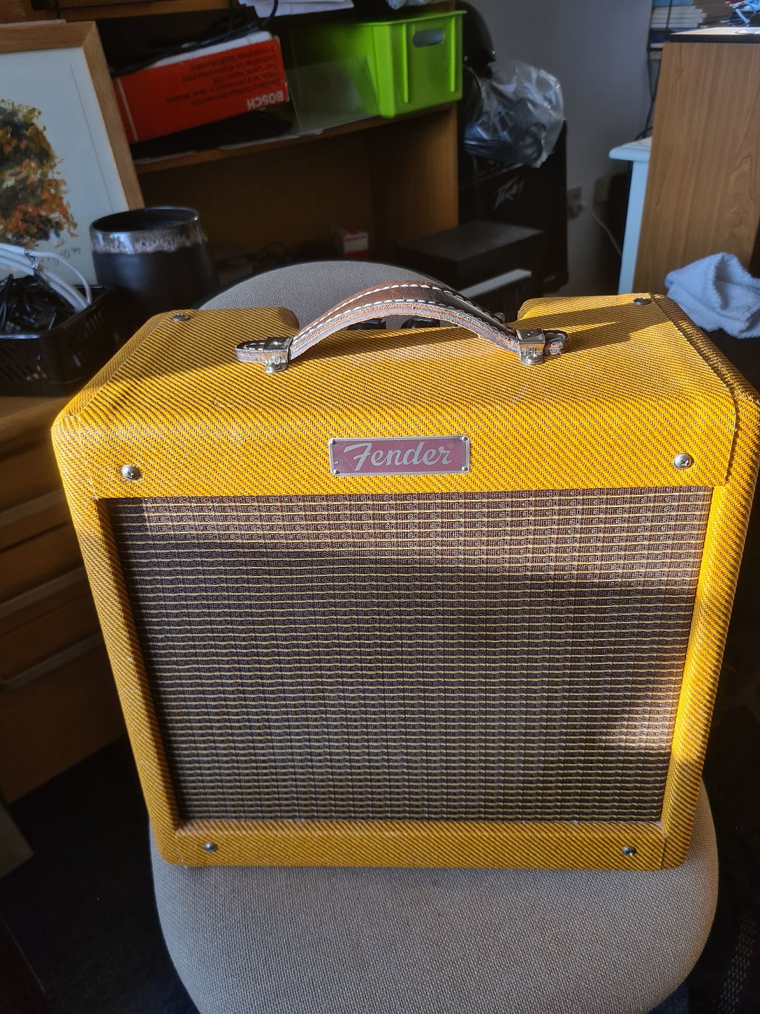 Fender Pro-Junior IV Ltd guitarforstærker type PR 257. Beklædt med gul kanvas. Testet og virker som den skal. Manual medfølger.