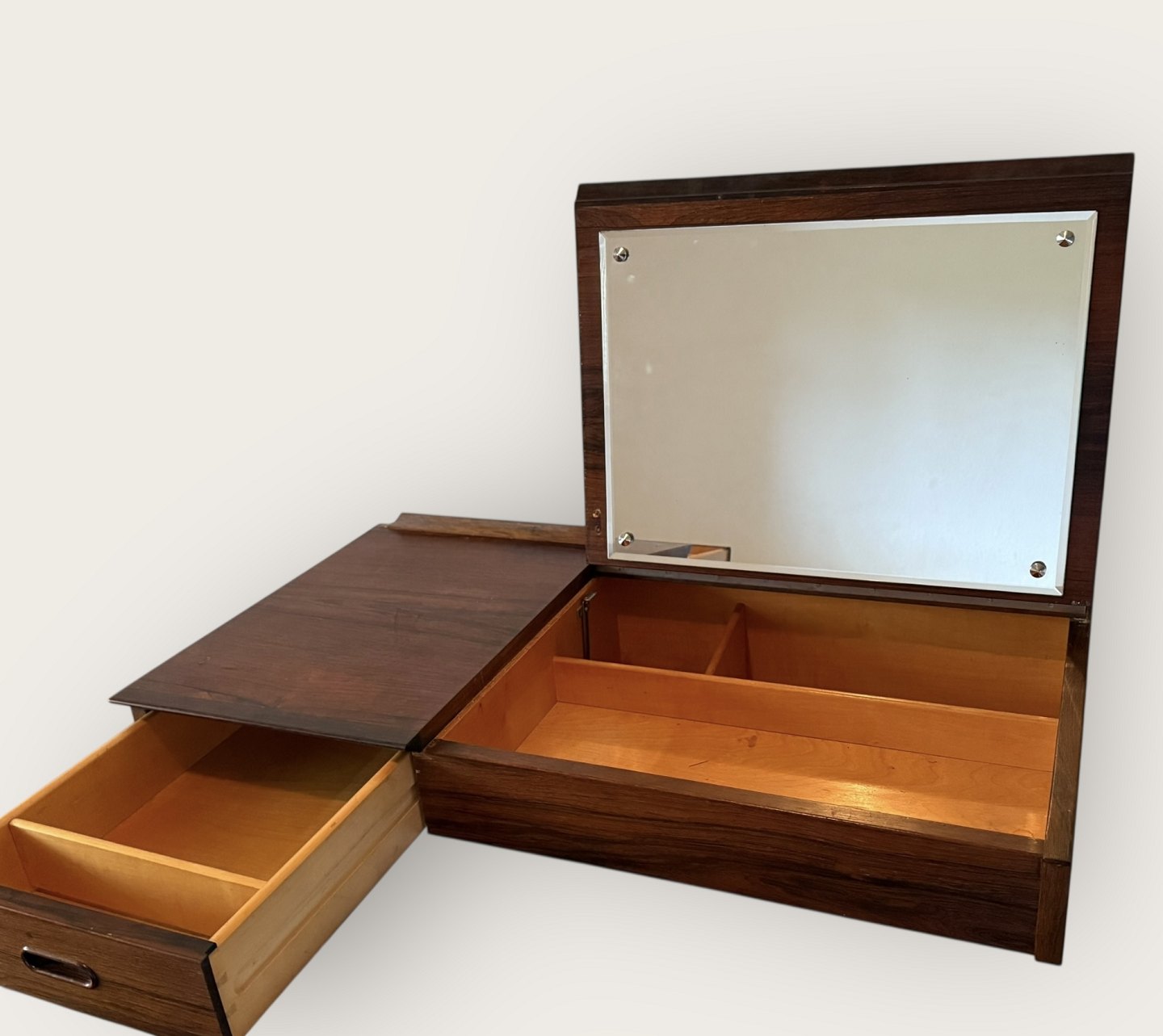 Væghængt sminkemøbel / skrivemøbel i palisander, Danish modern fra 1960'erne. Mål: 91x50x25cm *Fremstår i rigtig pæn brugt stand*