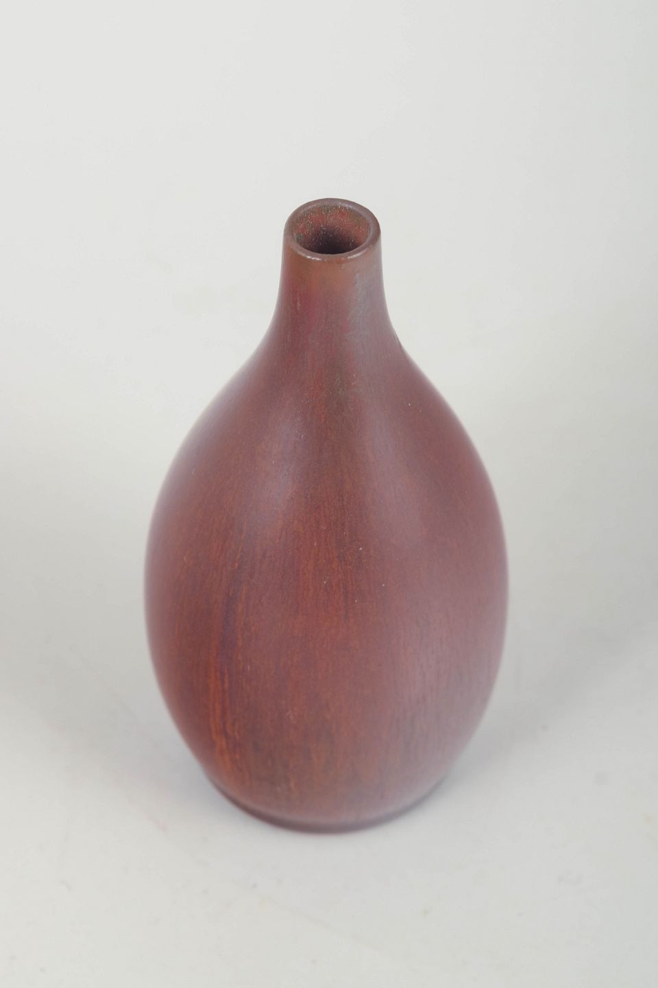 Elegant dråbeformet vase i stentøj med mørk, silkemat rødbrun overflade – et klassisk eksempel på Stålhane’s sans for form, balance og materiale.
