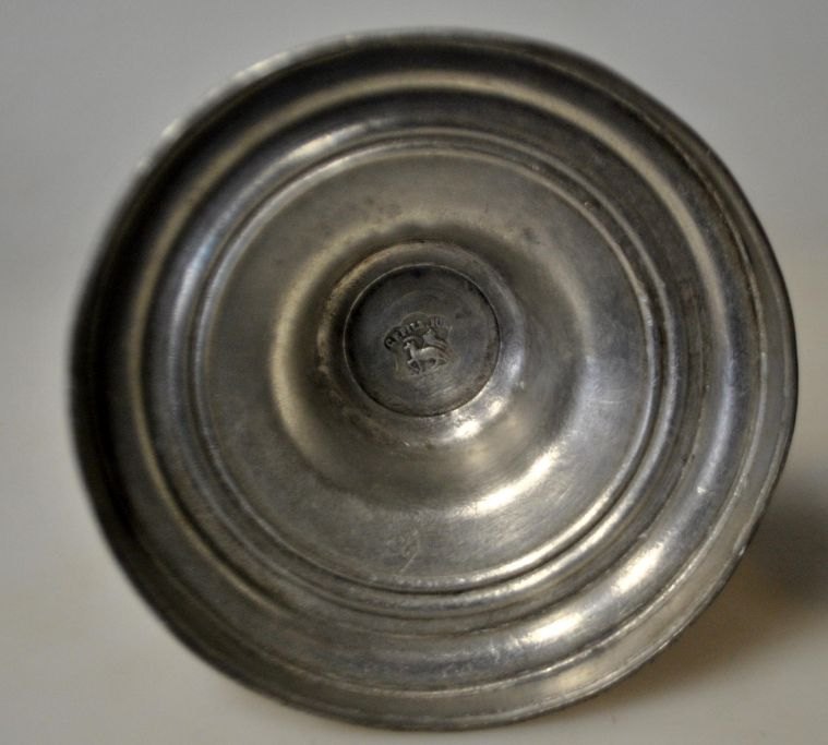 Empire lysestage i tin, 19. årh. Stemplet: C. F. Pilz, jun. H.: 17 cm.