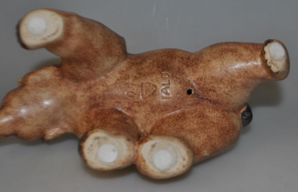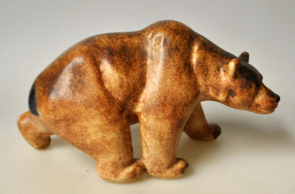 Hald, Peder (1892 - 1987) Danmark: En bjørn. 5975. Brunglaseret stentøj. Udført for Micahel Andersen & Søn, Bornholm. Signeret: HALD. L.: 23 cm. H.: 13 cm.