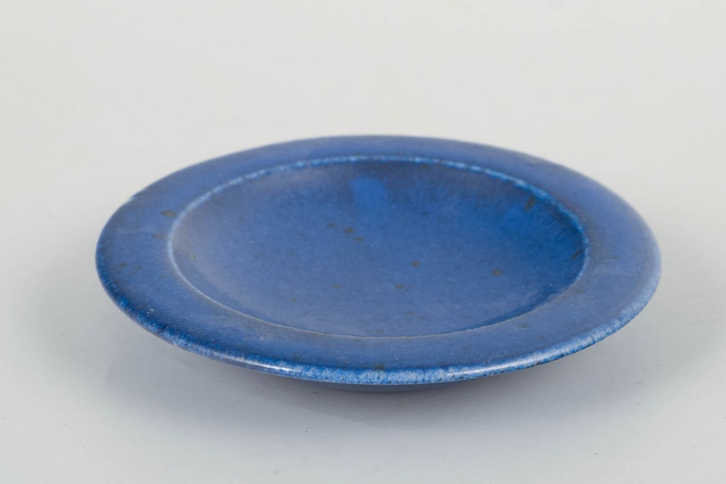 Lille stentøjsfad i karakteristisk Saxbo-glasur i dyb blå tone. En enkel, raffineret form med den klassiske matte overflade, som kendetegner Saxbos højbrændte stentøj.