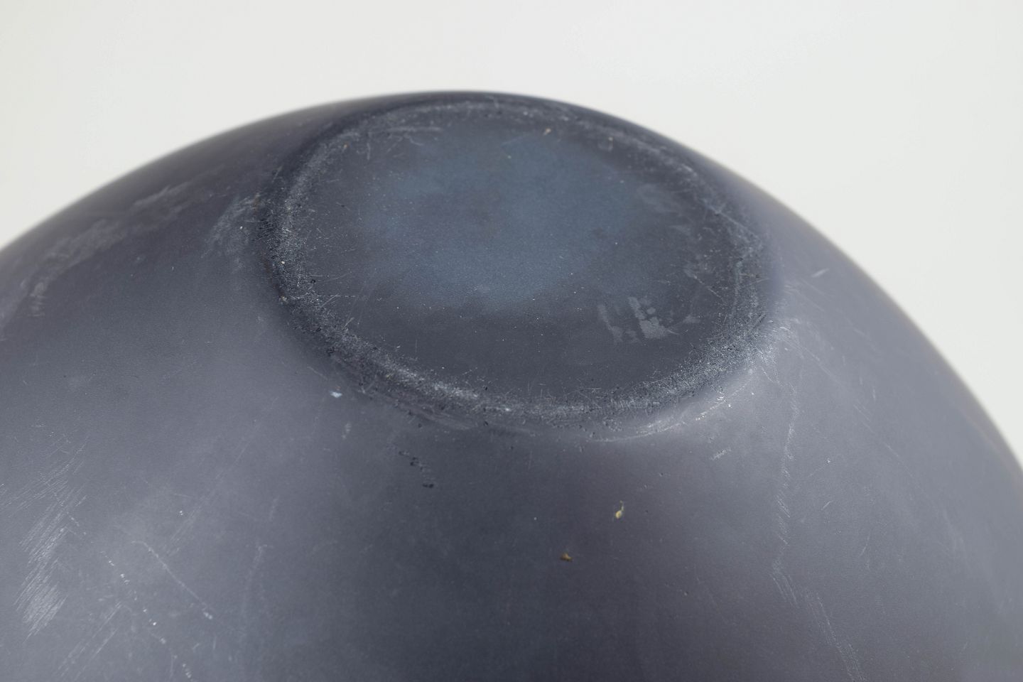 Klassisk dansk designskål i sortlakeret metal med emaljeret inderside i en sjælden gul farve. Den ikoniske halvkugleform giver et skarpt, minimalistisk udtryk, karakteristisk for Krenit-seriens tidløse design.