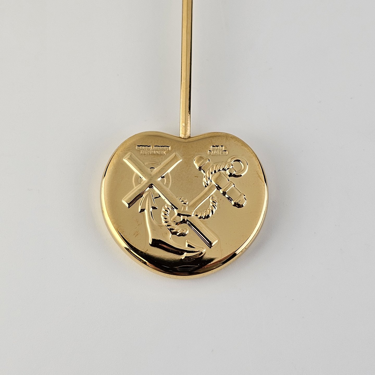 Vedhænget er et hjerte med motiv af en baby og teksten Den lille prins og 15.10.2005. Bagsiden er dekoreret med et anker og et kors