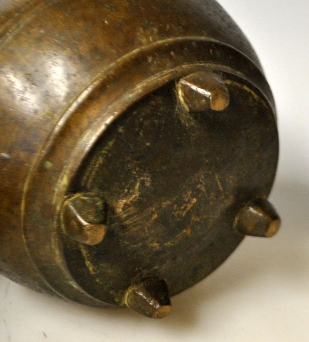 Kinesisk bronze censor, 17. årh. På tre ben og med stregdekorationer. H.: 14 cm.