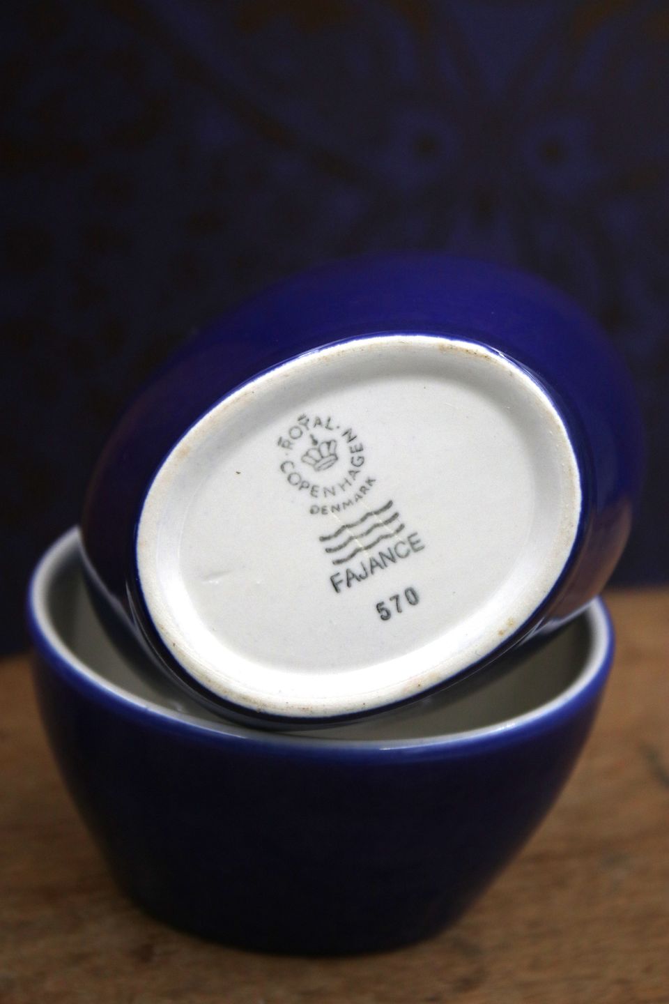 i mørkeblå / hvid glasur. H: 4,7cm. 8,5x6,5cm.