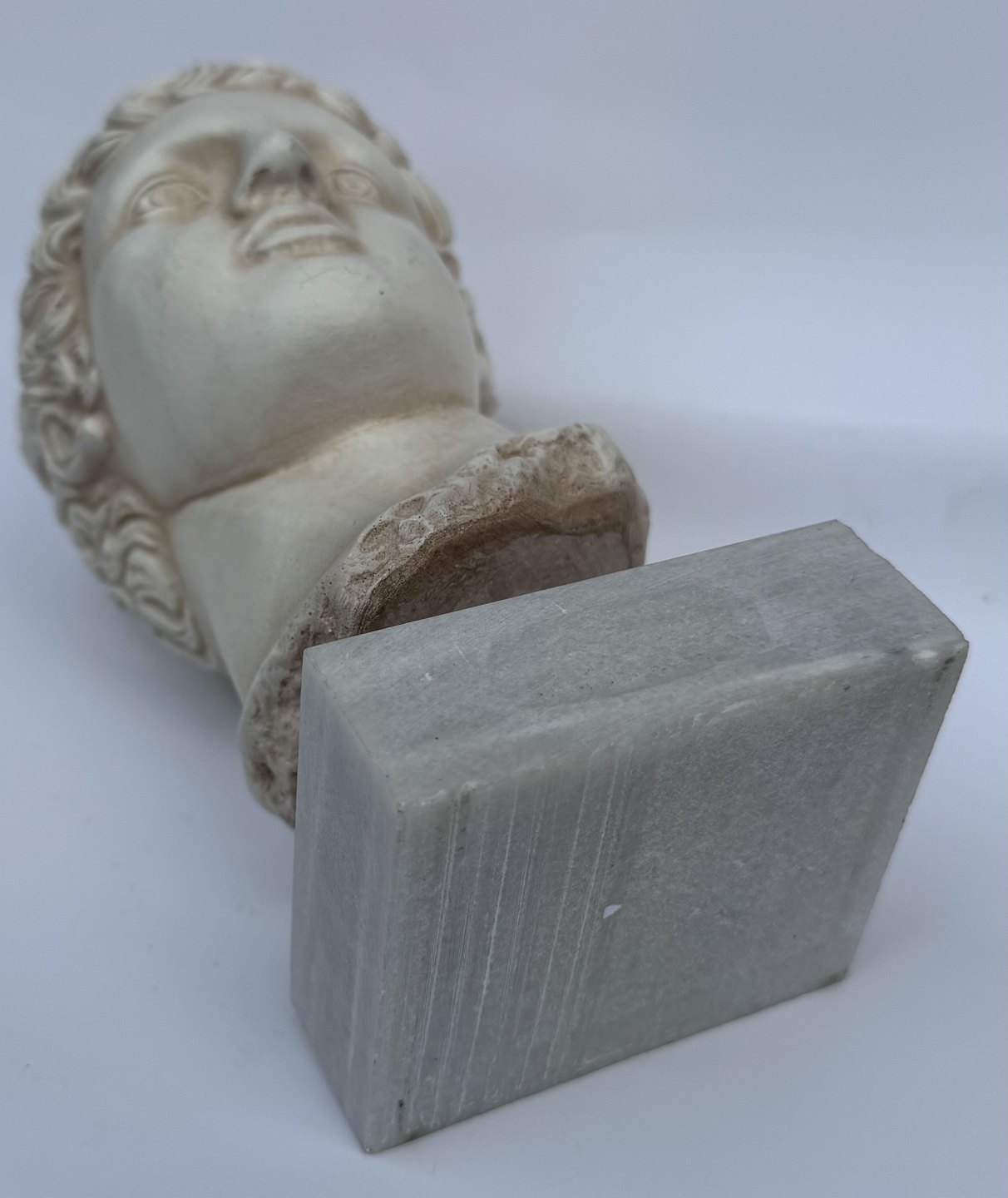 Buste, hoved skulptur, i gips af Efivos Marathon Boy. Stående på hvid base af stenart. Fremstår i god stand. H. 21,5 cm