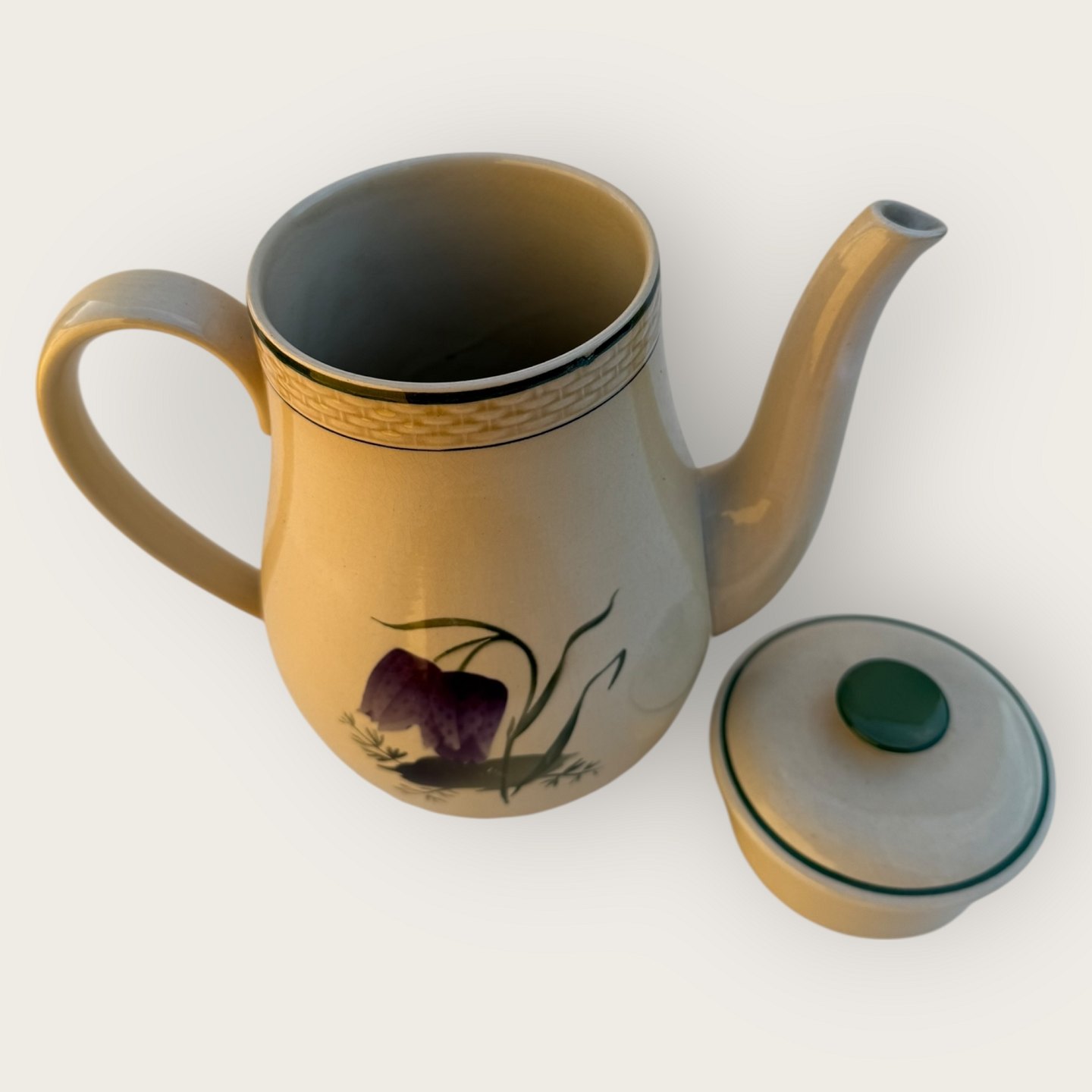 Royal Copenhagen, Aluminia, Victoria II frame form, Vibe egg, Fritillaria meleagris, Coffee pot, 20cm high *nice condition*