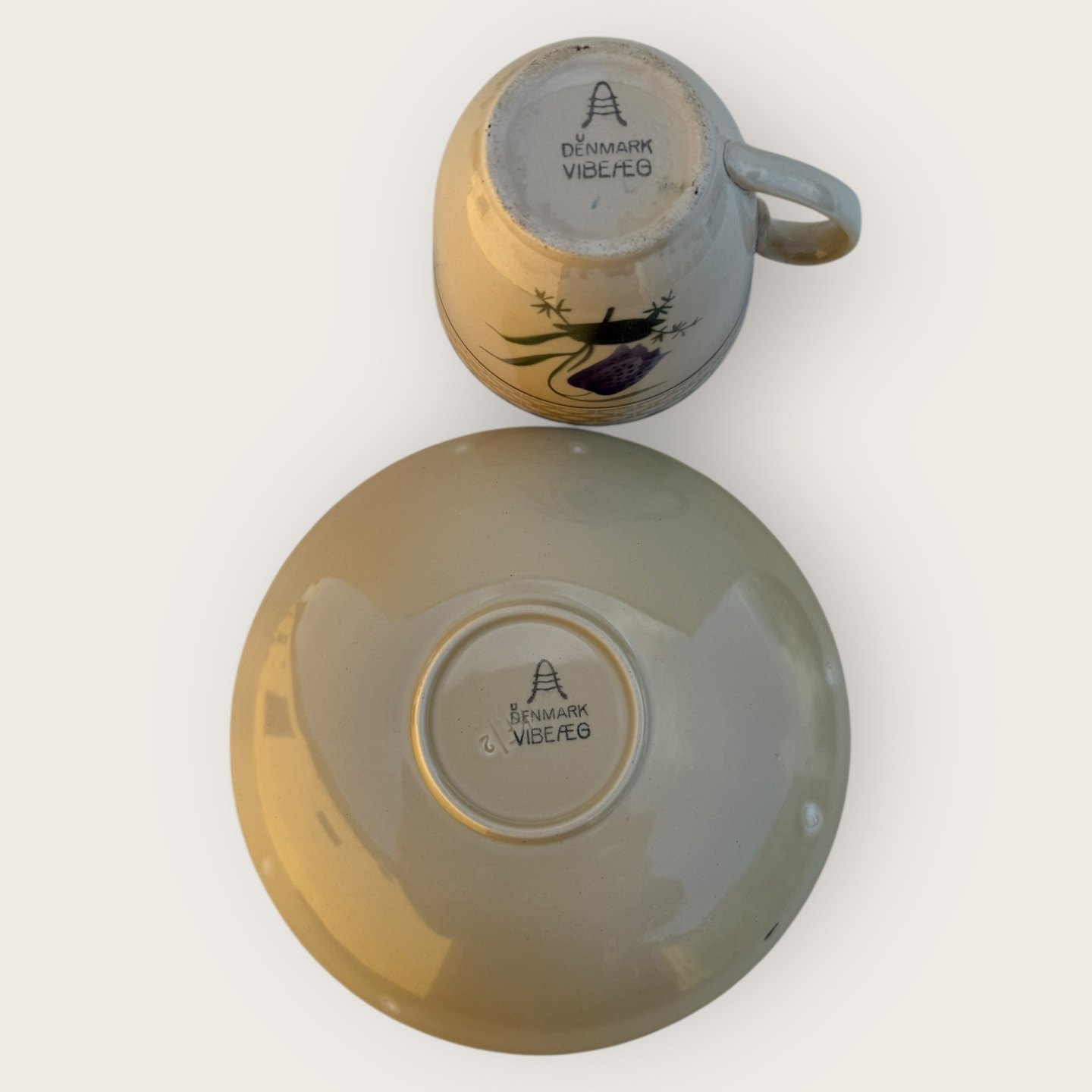 Royal Copenhagen, Aluminia, Victoria II frame shape, Vibe egg, Fritillaria meleagris, Coffee cup, cup diameter 7.5cm, height 6cm, saucer diameter 13.5cm *nice condition*