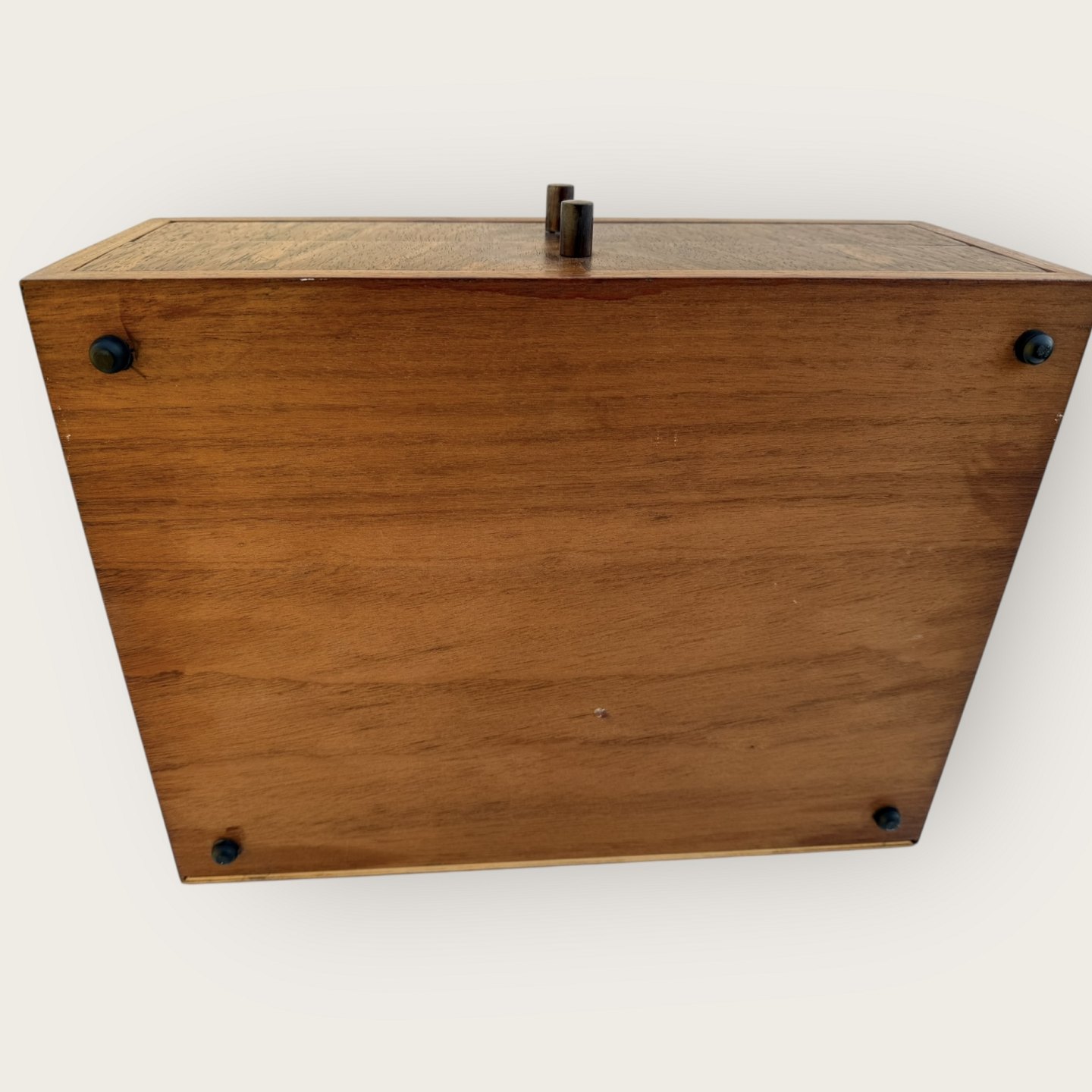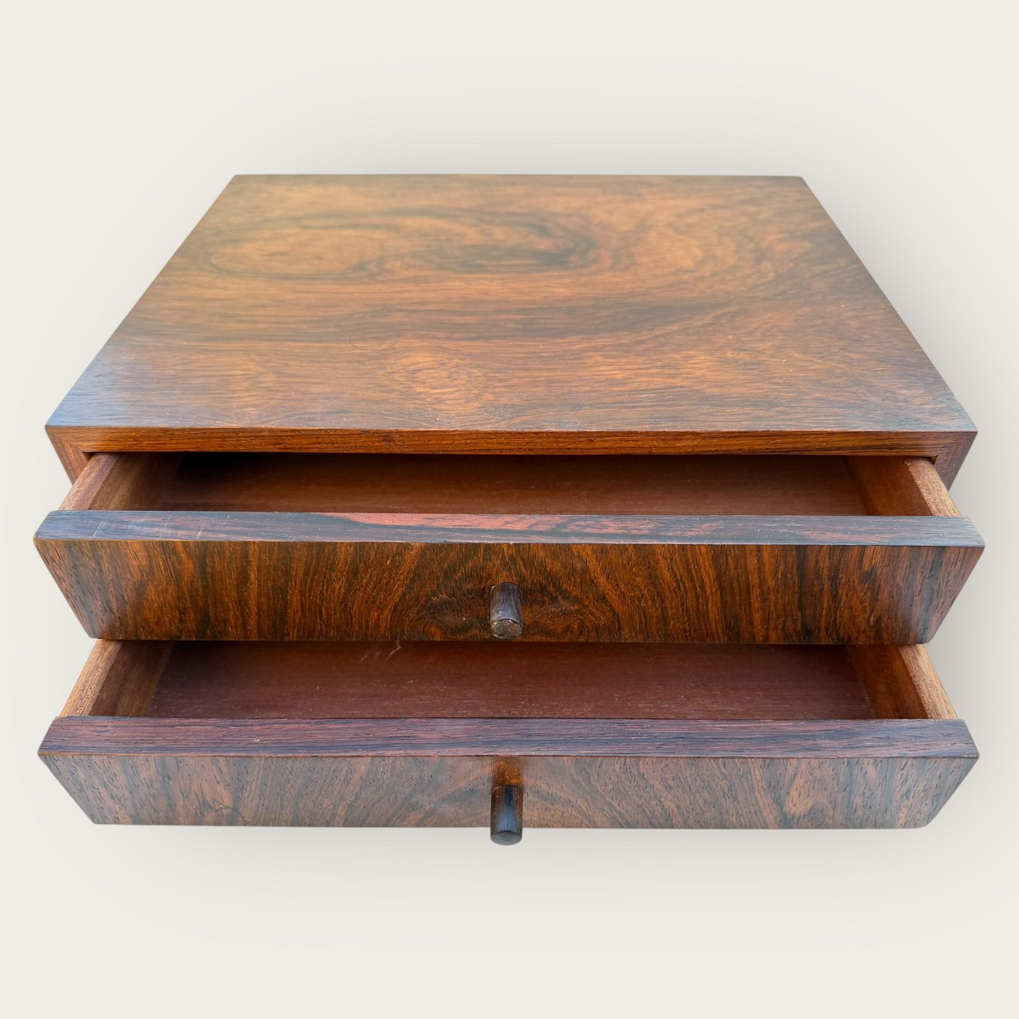 Palisander skrin med 2 skuffer, Danish modern fra 1960'erne, fremstår i rigtig pæn stand med få brugsspor, Mål: 32x25x12cm