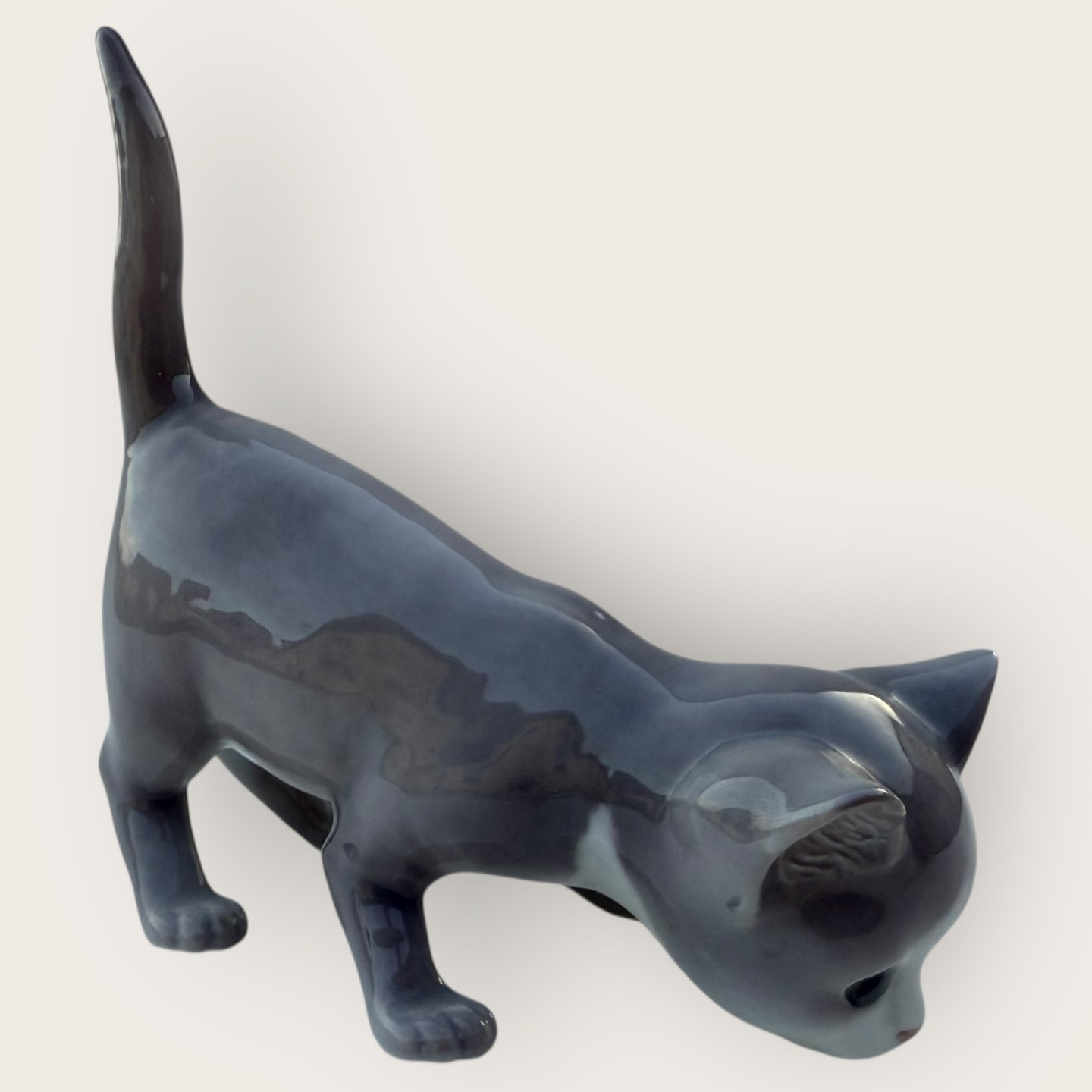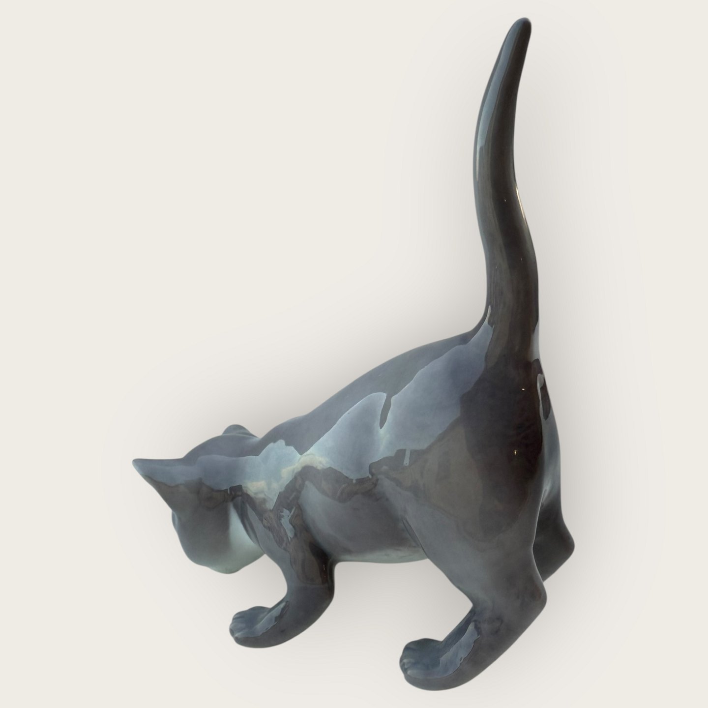 Bing & Grøndahl, Grå kat med løftet hale, # 2517, 1. sortering, Mål ca. 12x13x6cm *Fin stand*