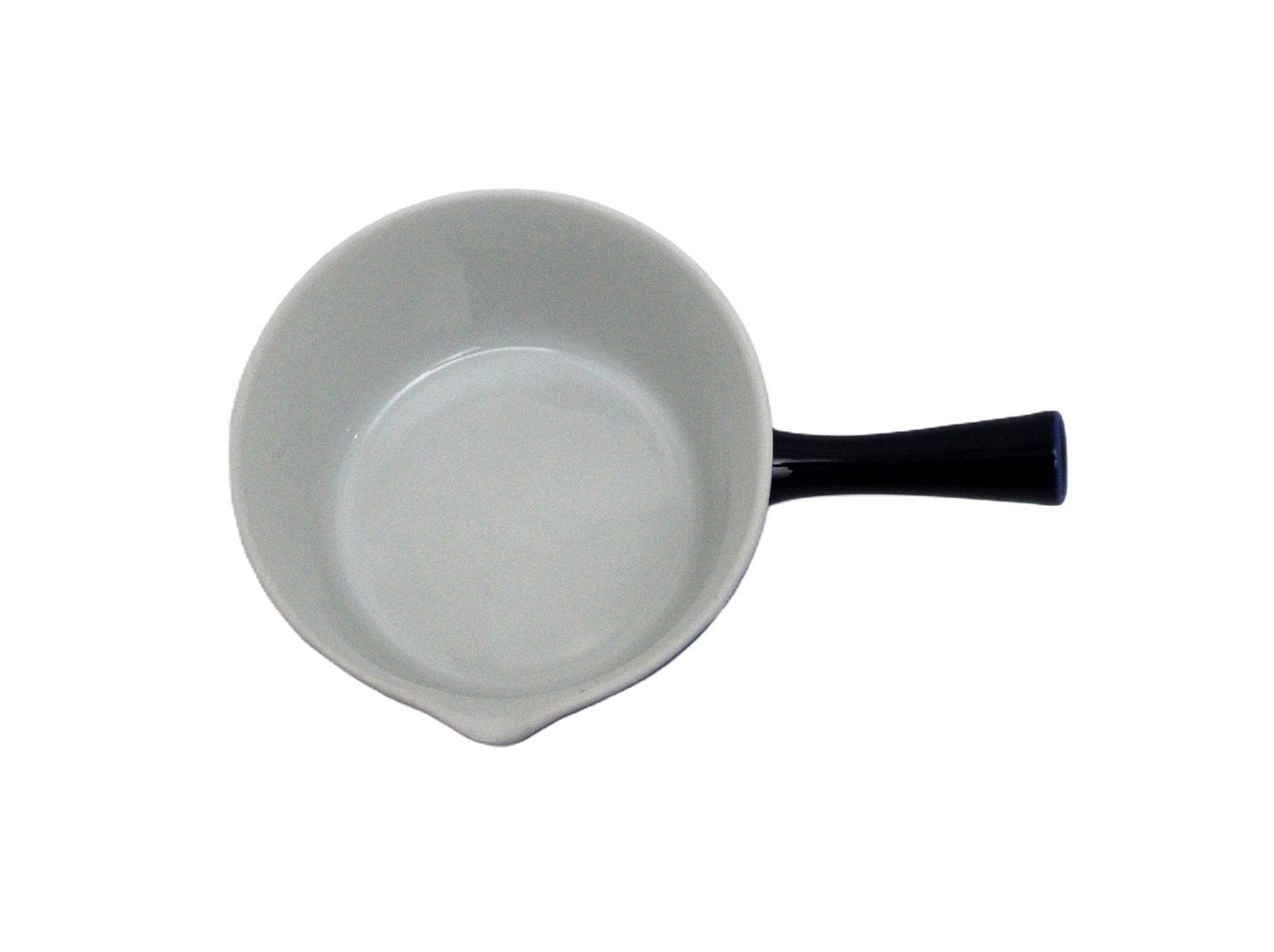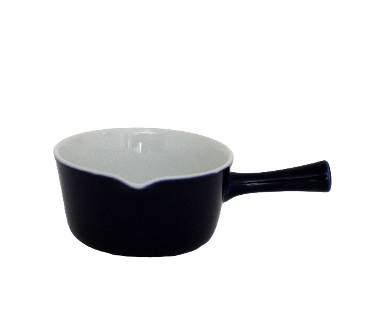 Text available in Danish: Lille smørnæb, kasserolle, Blå glasurfarver 2600, Lyngby