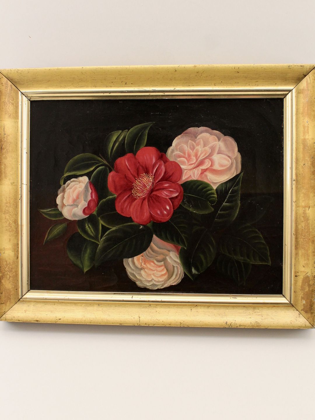 Blomster maleri 30 x 37 olie på lærred "Dansk Guldalder". 19.årh. emne nr. 628609