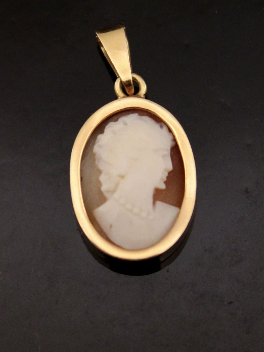 Came vedhæng 1,4 x 2 cm. monteret i 14 karat guld stemplet 585 emne nr. 628620