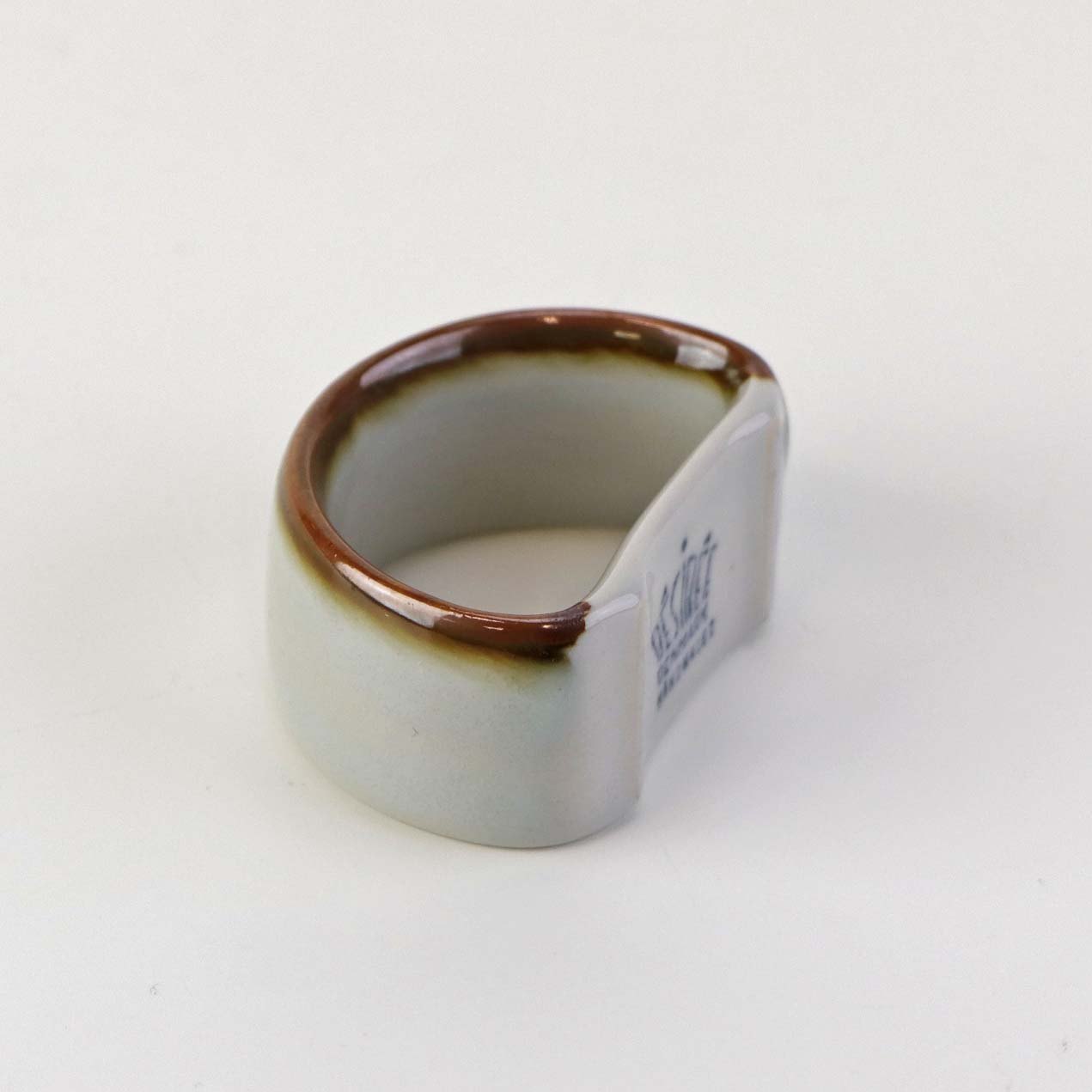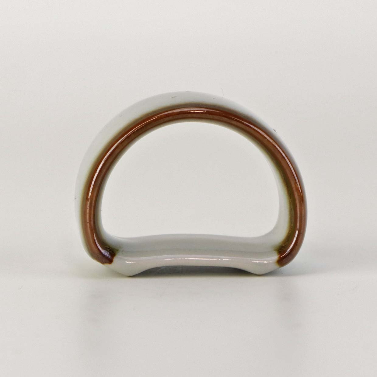 Diskos er af ovnfast stentøj. Stellet er gråt og håndmalet med brune og grønlige detaljer.