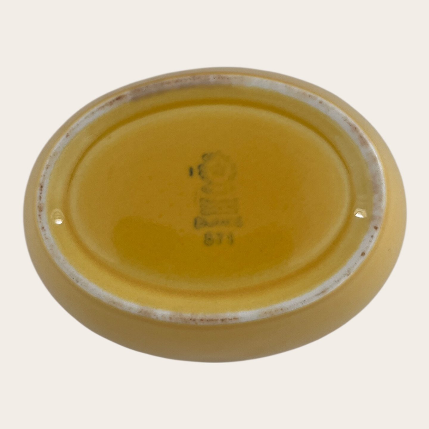 | Royal Copenhagen, Aluminia, Ursula, Oval skål, Gul #571, 1. sortering, 10,5cm lang, 8cm bred, 6cm høj, Design Ursula Munch Petersen *Pæn stand*