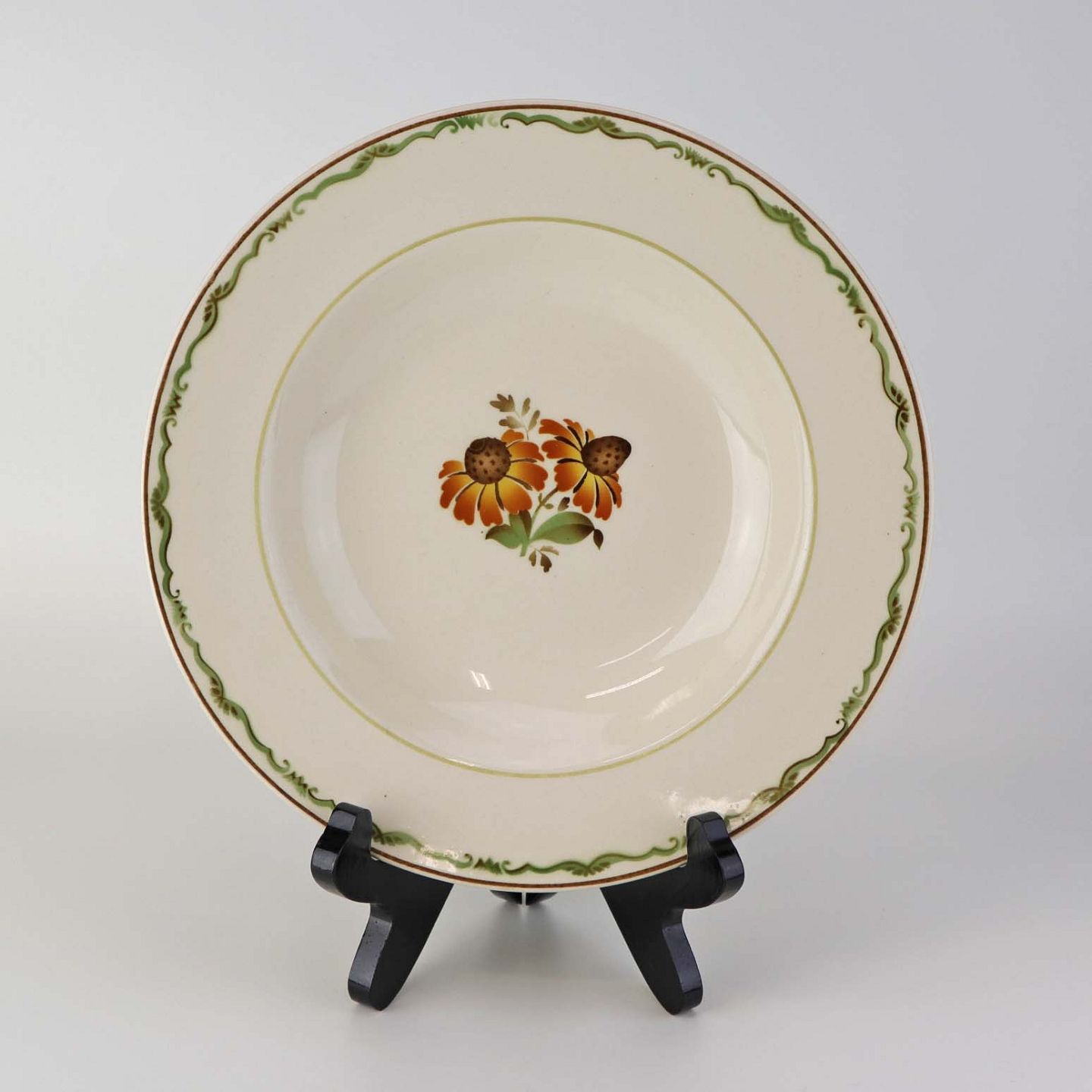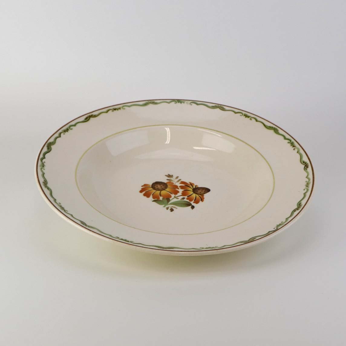 Dyb suppetallerken i fajance fra stellet Solbrud fremstillet i perioden 1937-1967