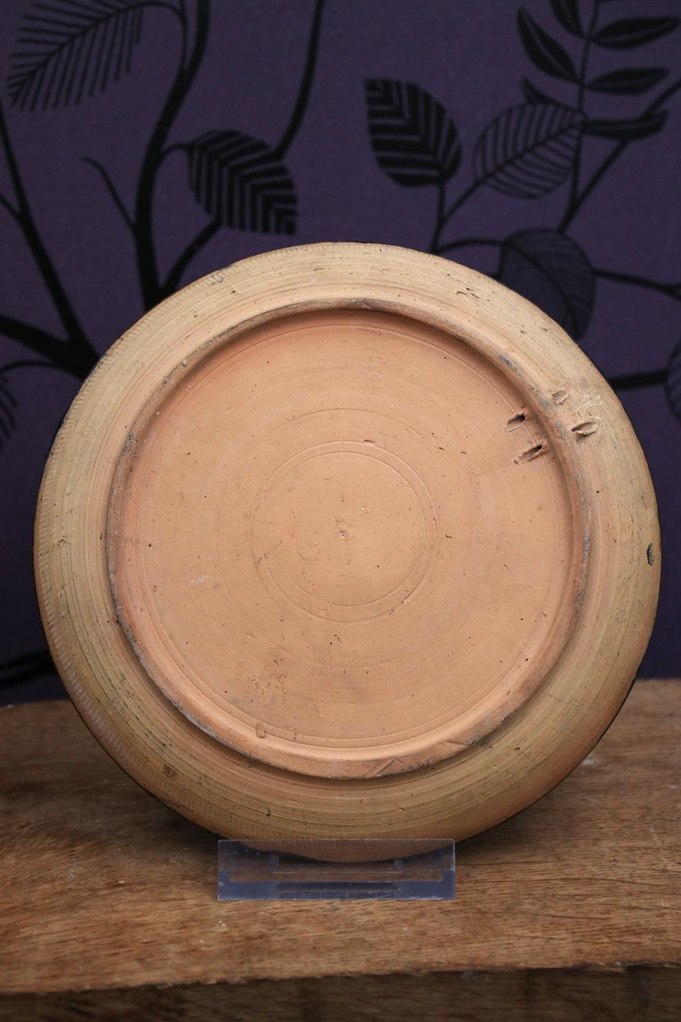 Gammel terrakotta tallerken / platte med bemalet motiv af julemærket fra Julen 1938...