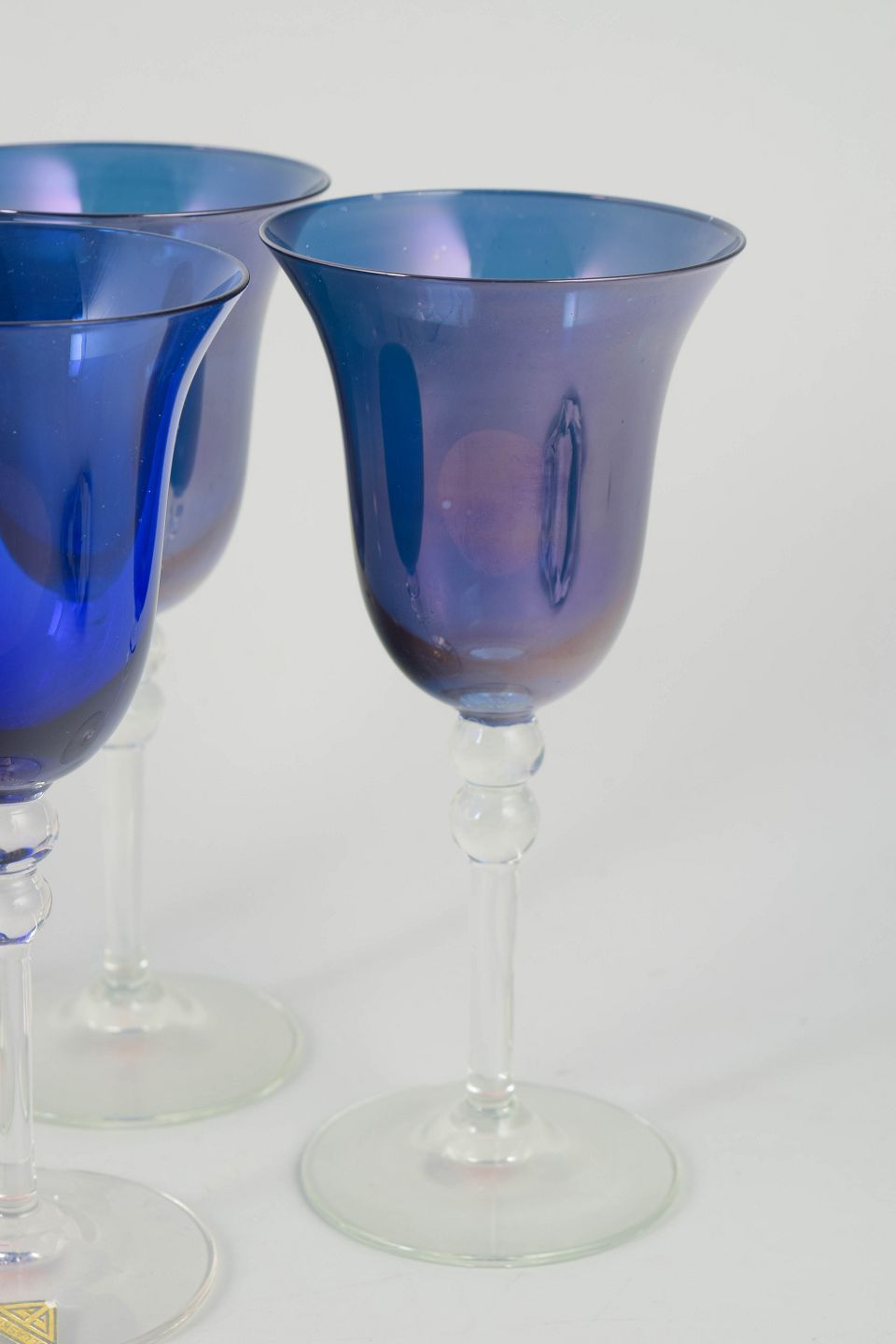 Sæt bestående af fire håndlavede champagneglas i kunstglas med slank cuppa og let, elegant stilk. Glassene er udført i et klassisk og balanceret formsprog, karakteristisk for svensk glasproduktion i 1960’erne og 70’erne, med fokus på funktion, proportion og klarhed i udtrykket.