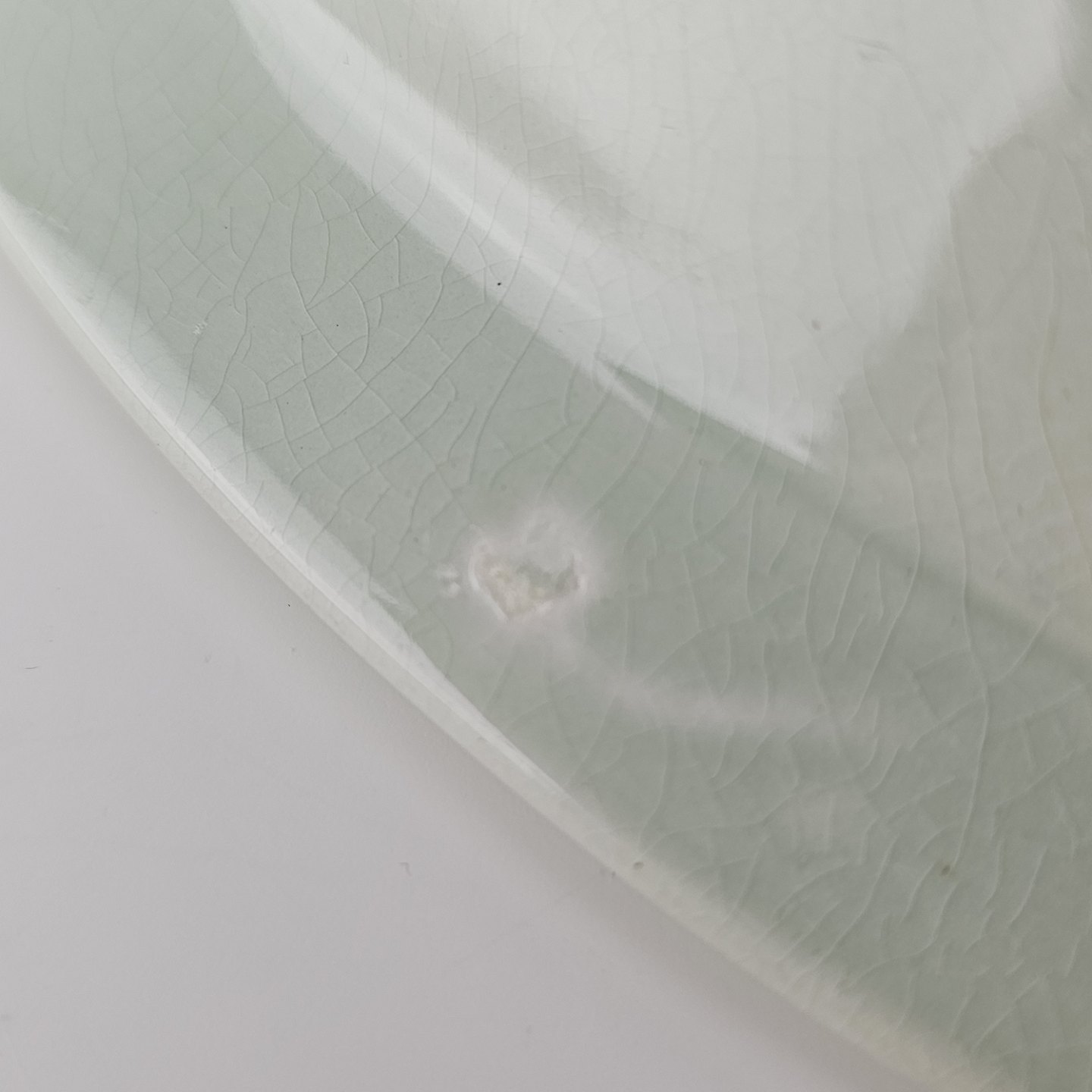 Stel i lysegrøn fajance med natur dekoration og flettet kant