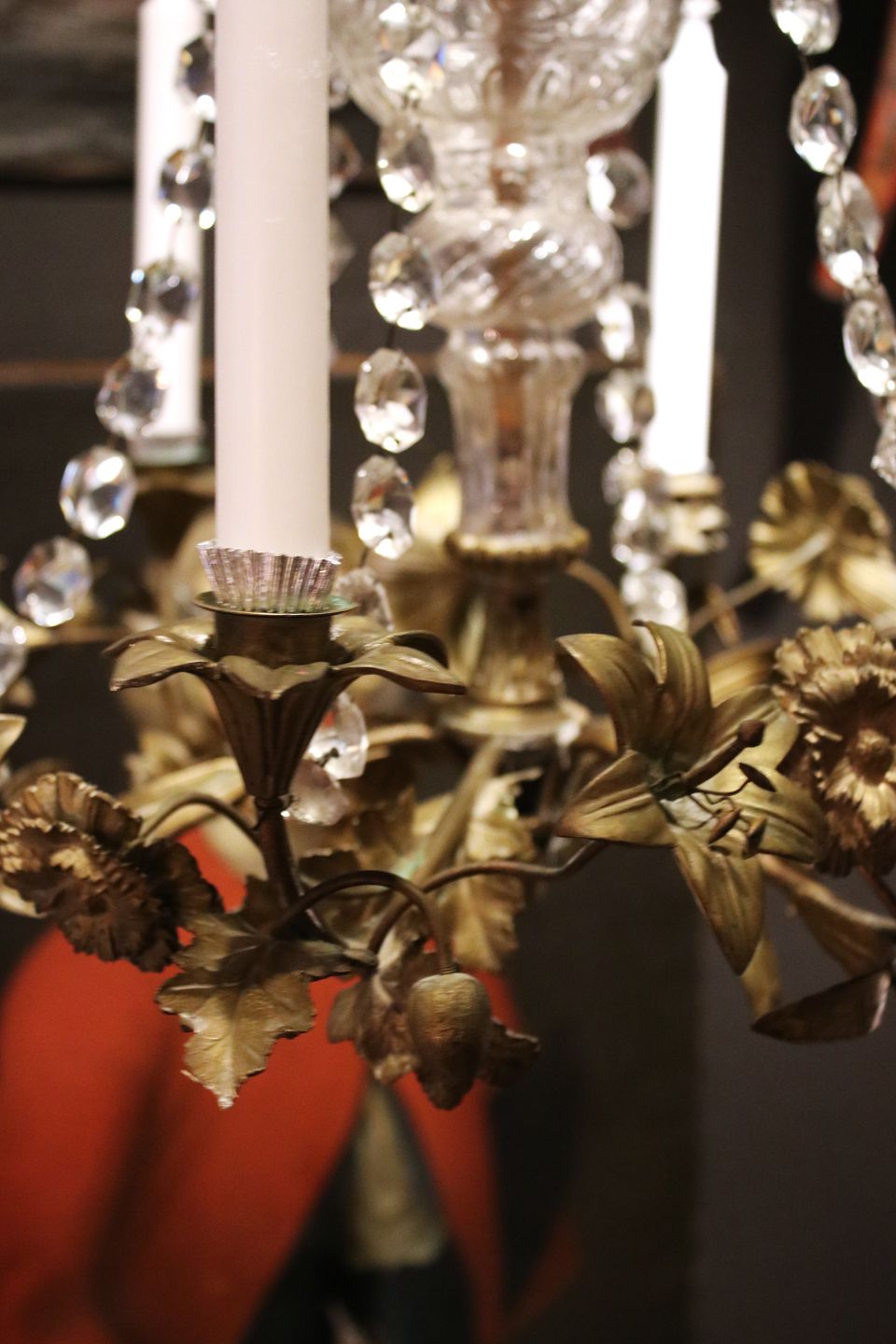 Antik , fransk lysekrone i bronze til stearinlys (6 stk.)