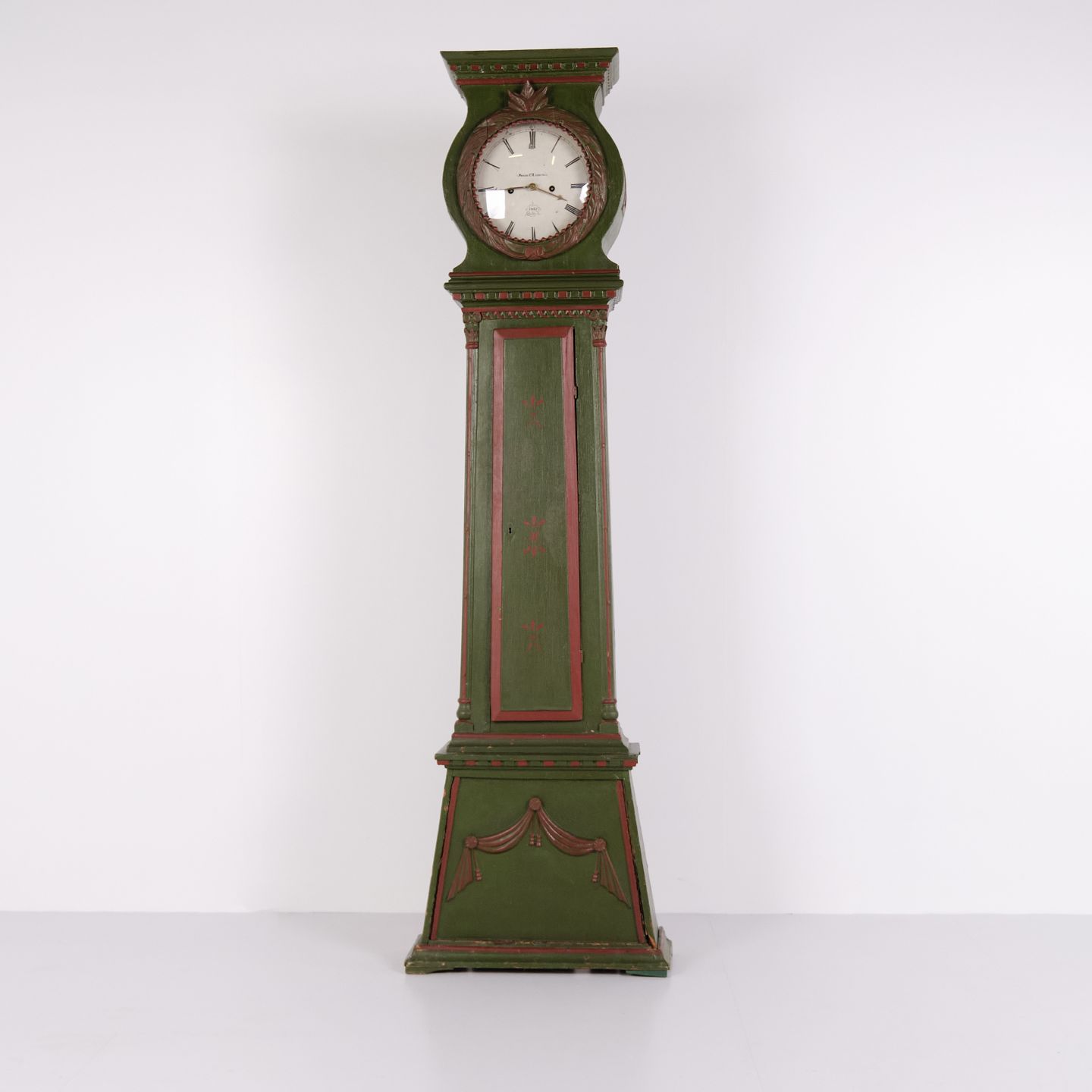 Bornholmerur – Frøkenmodel - Håndmalet Med Udskårne Detaljer – Grøn & Rød Bemaling – År 1860’erne