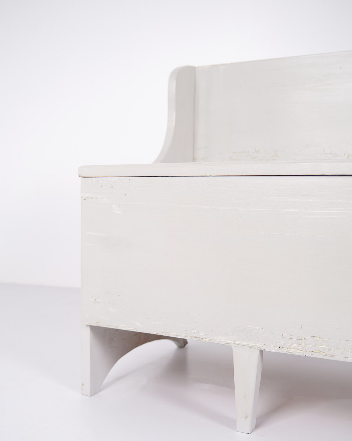Antik Slagbænk Med Opbevaring - Gråmalet - Fyrretræ - År 1890erne