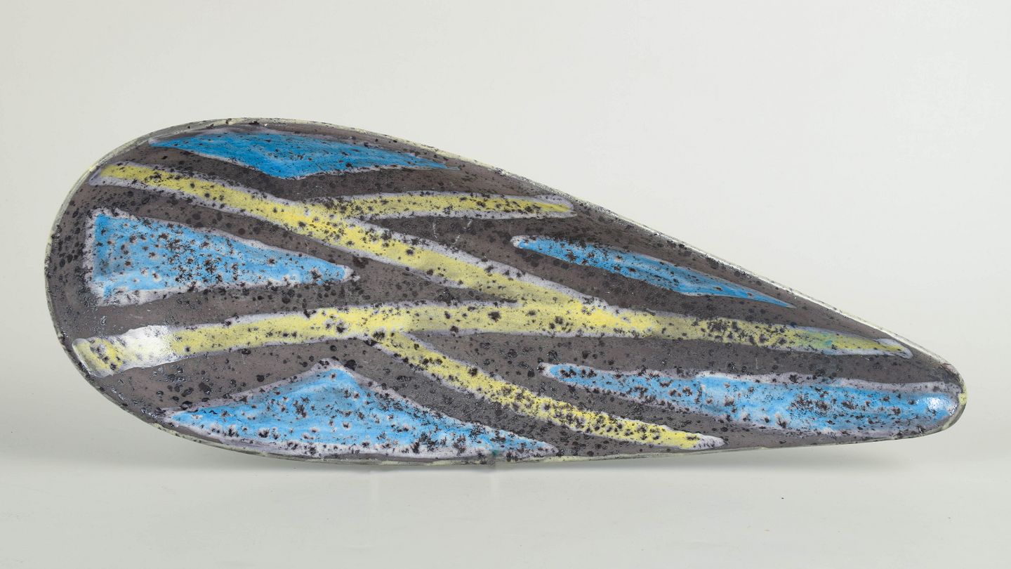 Guido Gambone (1909–1969) var en af Italiens mest markante keramikere i midten af det 20. århundrede, kendt for sin sikre formgivning og sine levende, grafiske dekorationer. Hans arbejder spænder fra skulpturelle former til funktionelle objekter, ofte kendetegnet ved stærke farvefelter, frihåndsmotiver og et tydeligt modernistisk udtryk. Bitossi i Montelupo Fiorentino var samtidig blandt de førende italienske værksteder inden for kunstkeramik, og produktionen fra 1950’erne og 60’erne har i dag status som eftertragtet italiensk designklassiker.