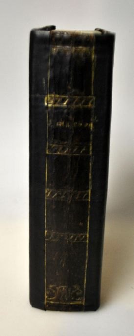 Salme bog i sort læderindbinding og sølv beslag, 1857. Danmark.
