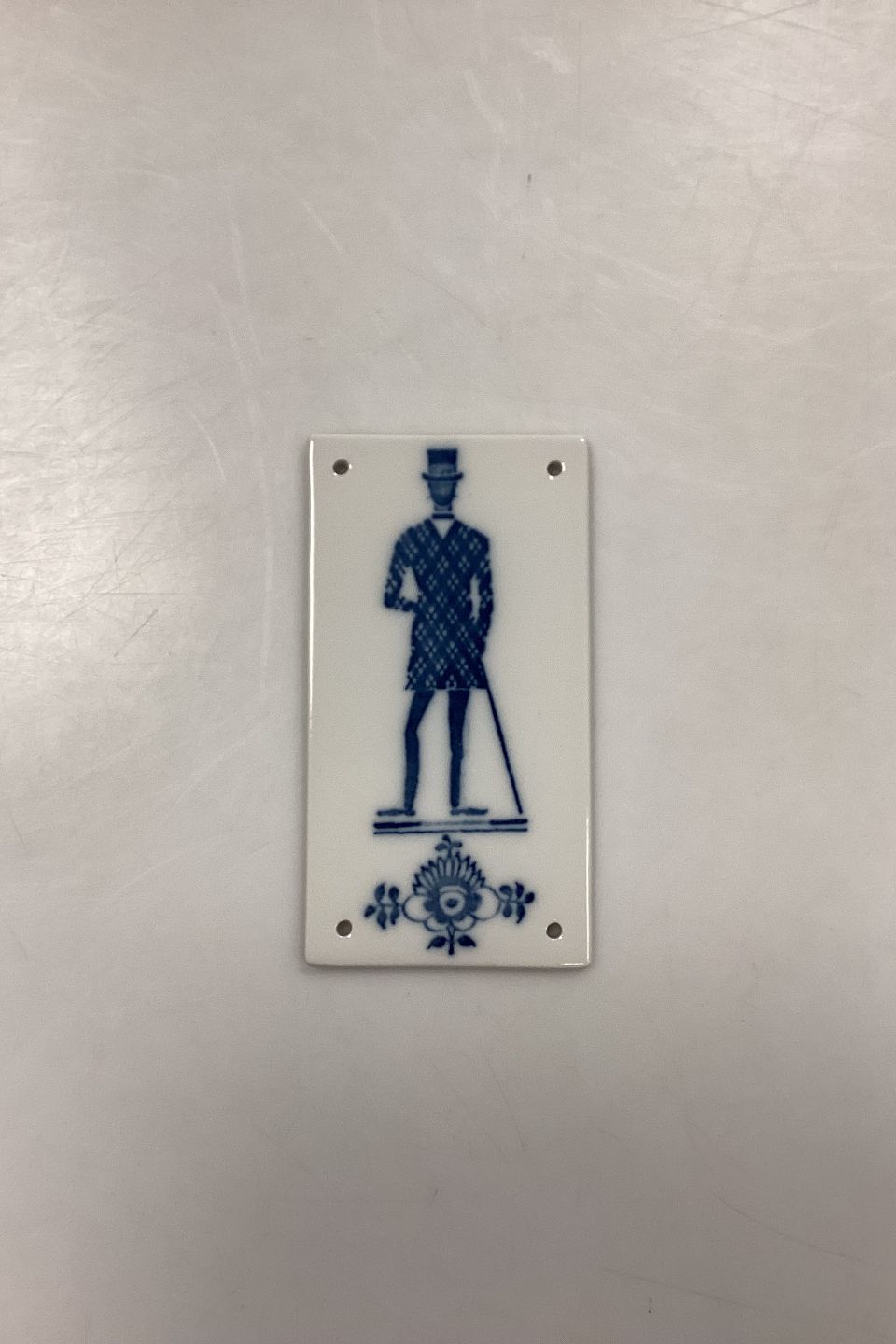 Royal Copenhagen Toiletskilt Herre No. 9875 H. Måler 11,8 cm x 6,4 cm / 4,64 in. x 2,52 in. 1. Sortering.