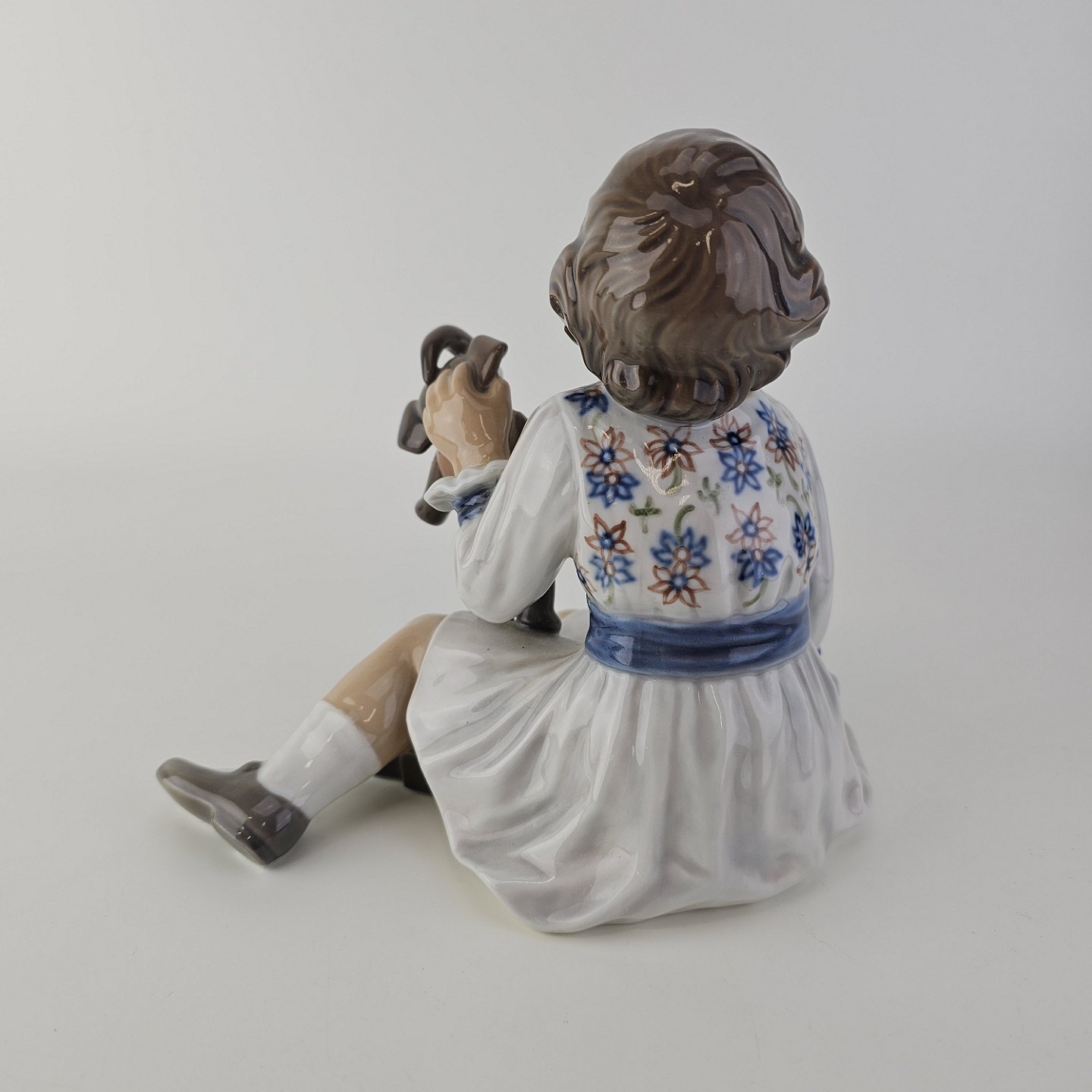 Figur i porcelæn med motiv af en pige med en legetøjselefant