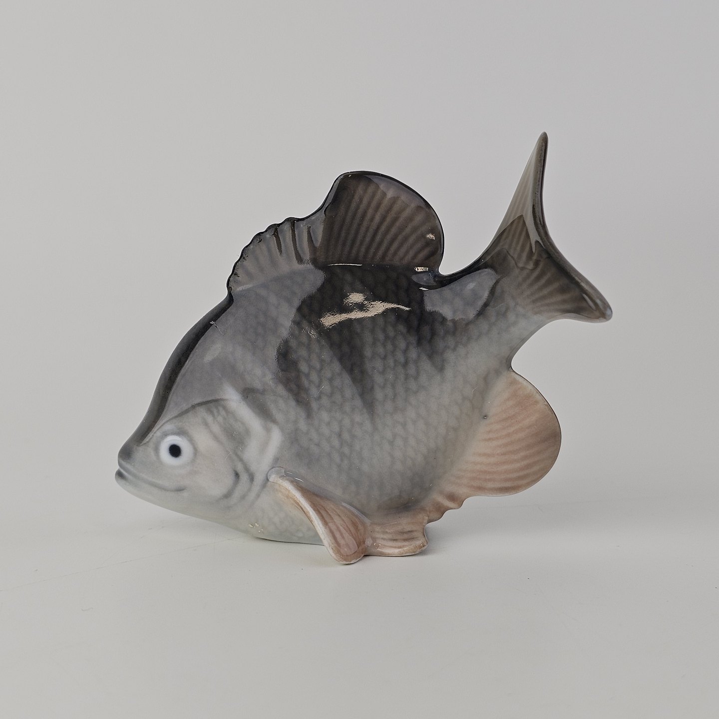 Figur i kongeligt porcelæn med motiv af en amerikansk aborre