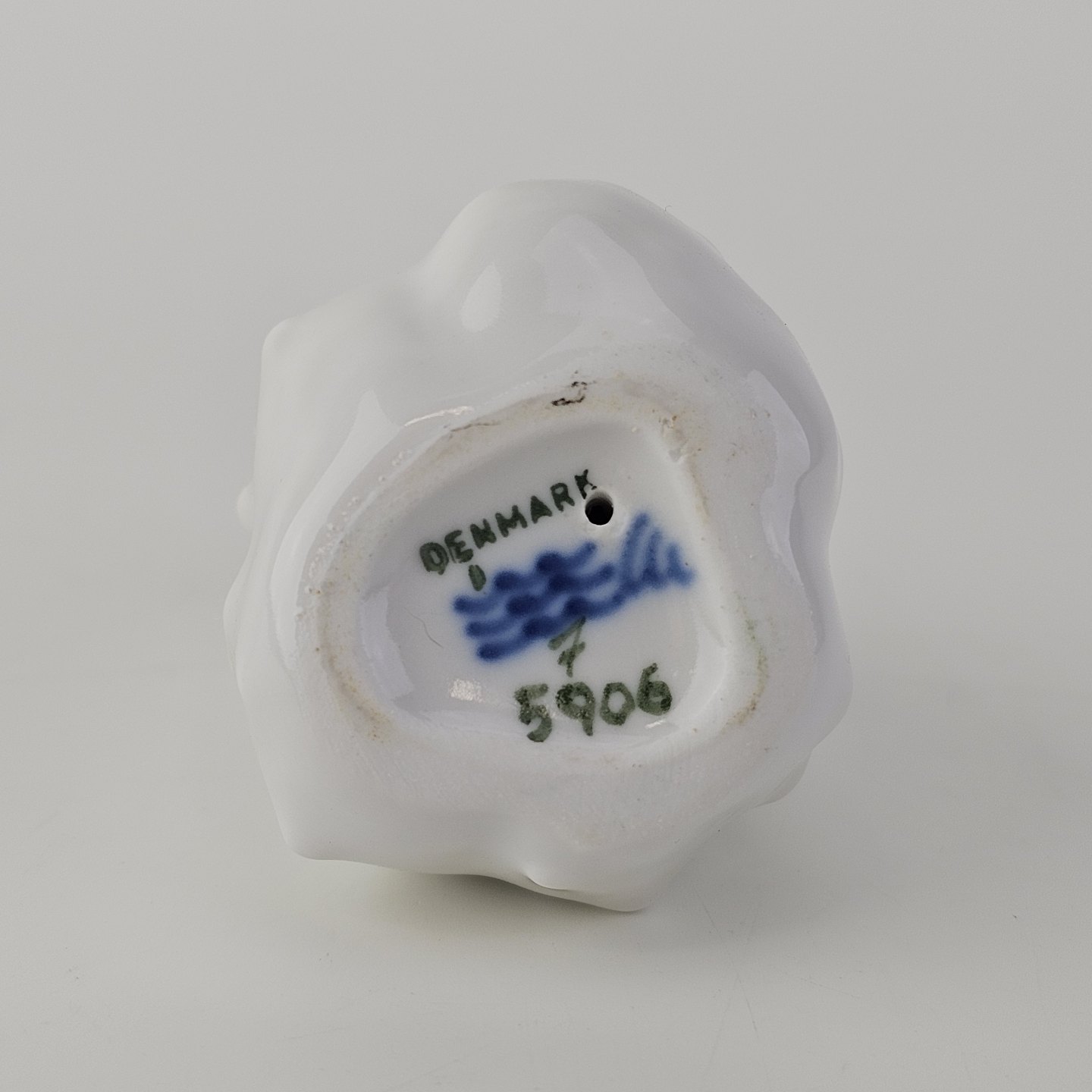 Figur i kongeligt porcelæn med motiv af en hvid mus siddende på en kastanje