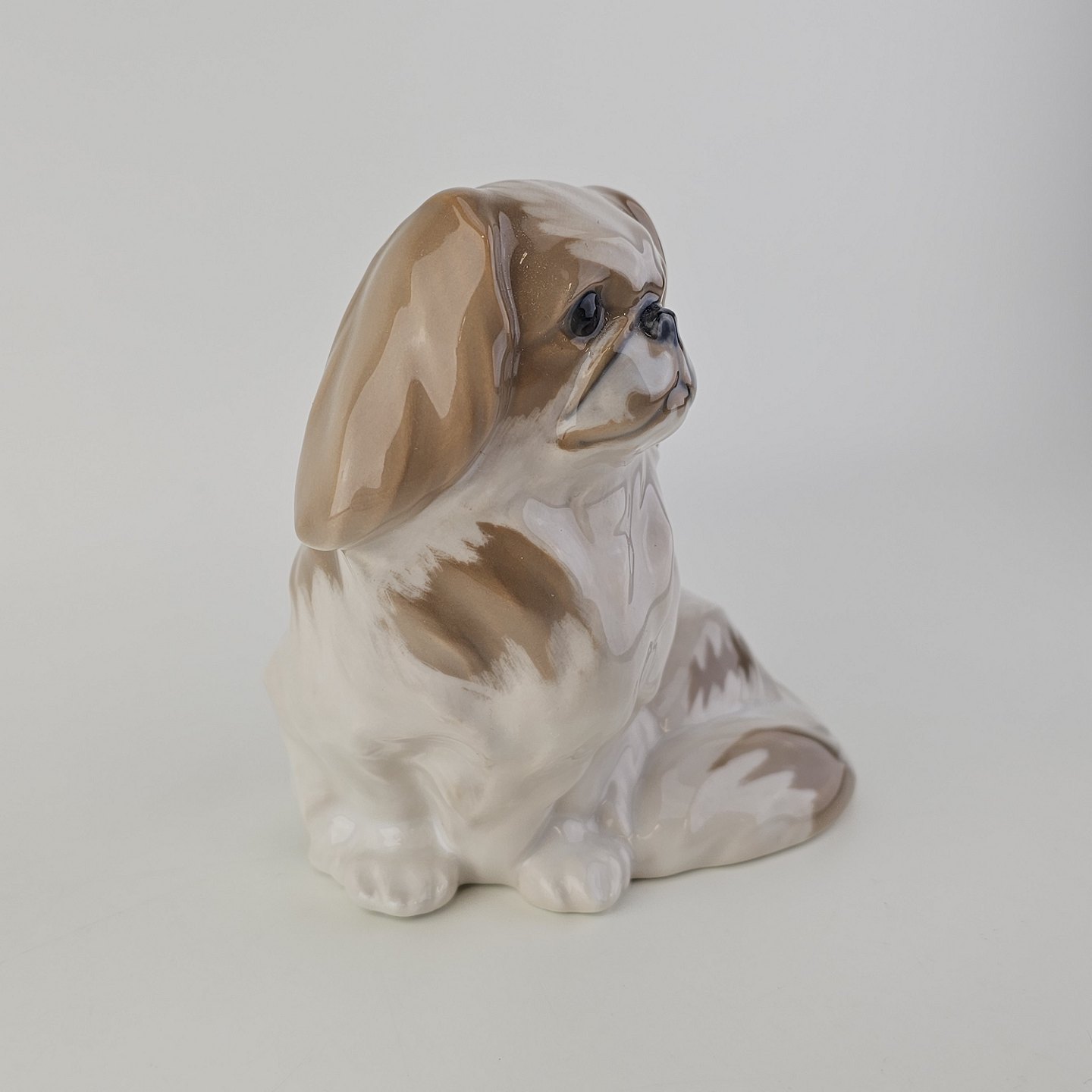 Figur i kongeligt porcelæn med motiv af en pekingeser hund
