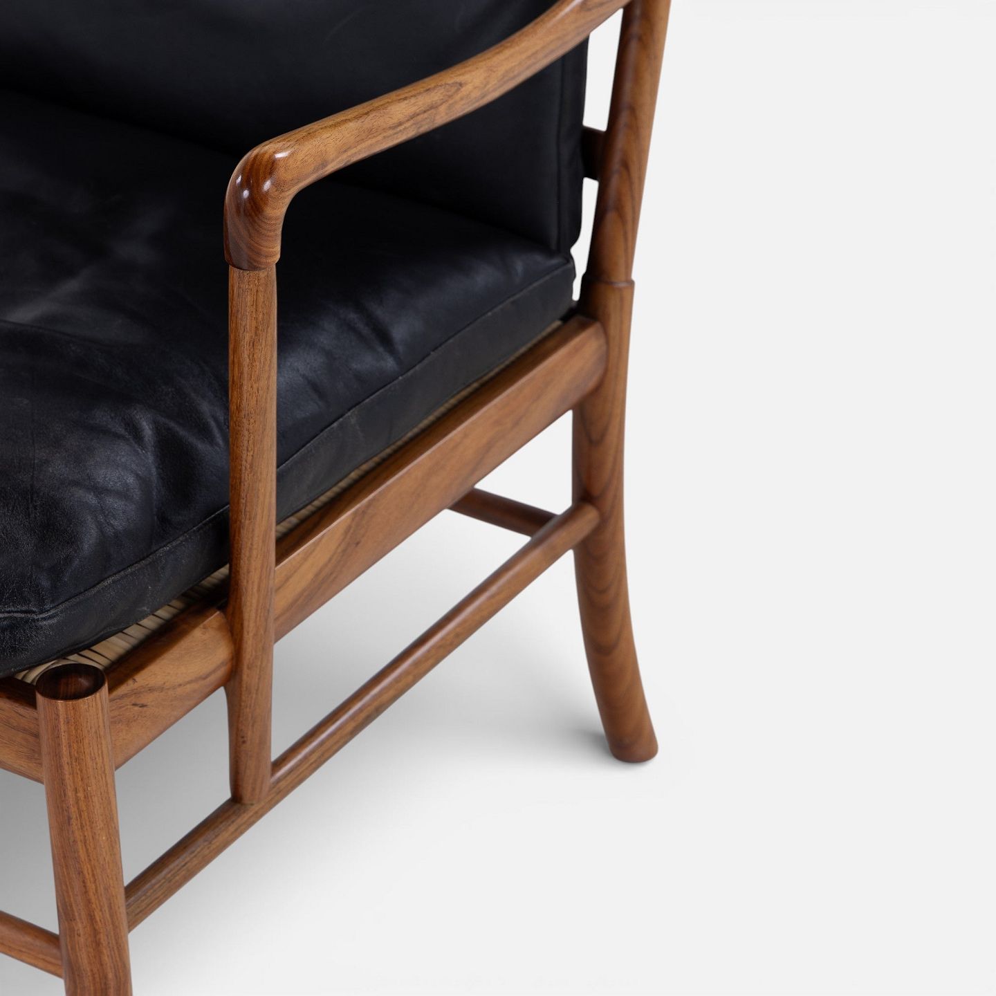 PJ 149 - 'Colonial Chair'-lænestol i palisander med hynder i patineret, sort læder. Mærket fra producent.
