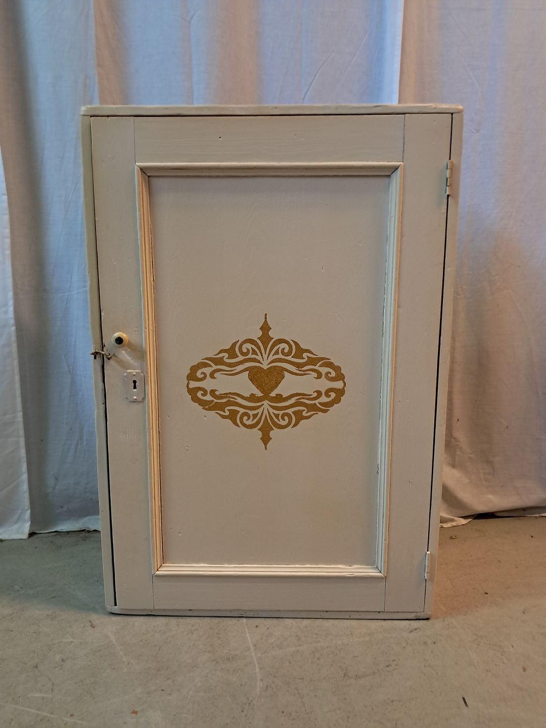 Malet vægskab i massivt fyrretræ,fra 1920erne.
