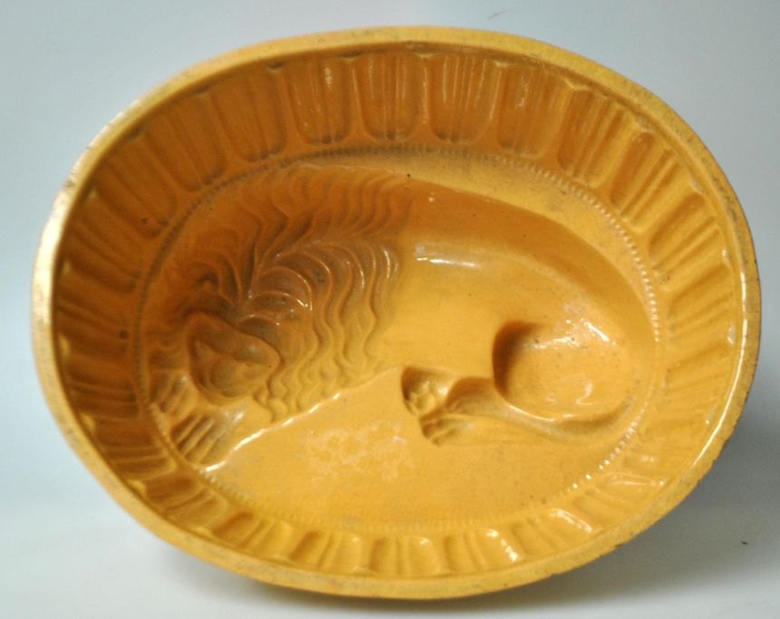 Bornholmsk buddinge form, 19. årh. Danmark. Med løve. L.: 26 cm. H.: 14 cm.