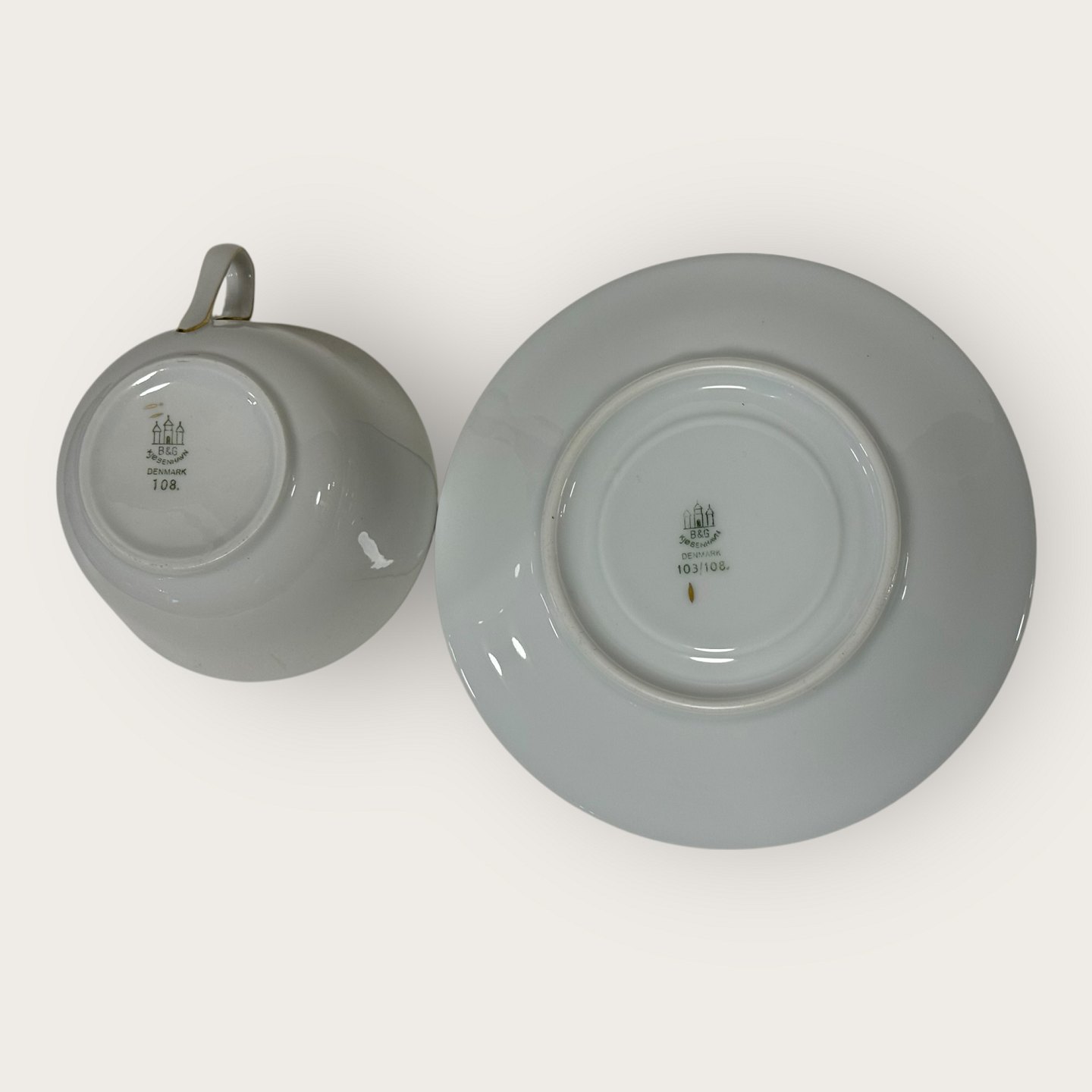 | Bing & Grøndahl, Leda, Tekop sæt #108 Form 676, 5,5cm høj, 9,7cm i diameter, Design Ebbe Sadolin *Pæn stand*