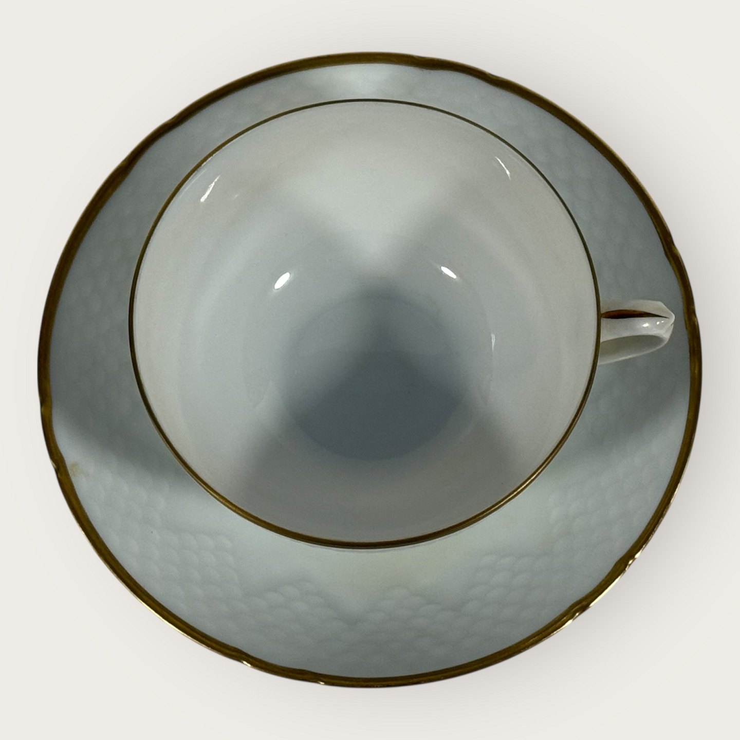 | Bing & Grøndahl, Aakjær, Hvid porcelæn med guldkant, Tekop sæt #108, 5cm høj, 10cm i diameter, 1.sortering *Pæn stand*