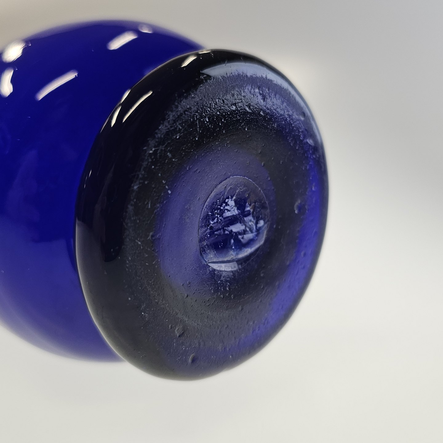 Håndblæst balusterformet hyacintvase i blåt glas