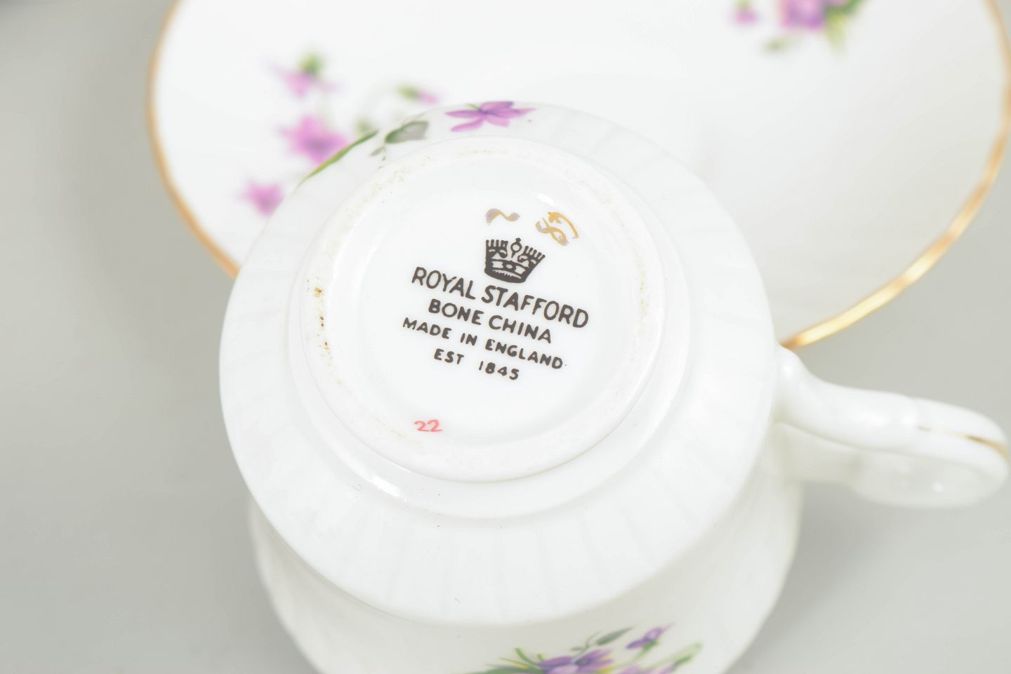 Royal Stafford was founded in 1845 in Staffordshire, England, one of the country’s most important centres for porcelain and pottery production. The company is particularly known for its bone china with traditional floral decoration and for a long-standing tradition of producing classic English tableware for both domestic use and export markets.