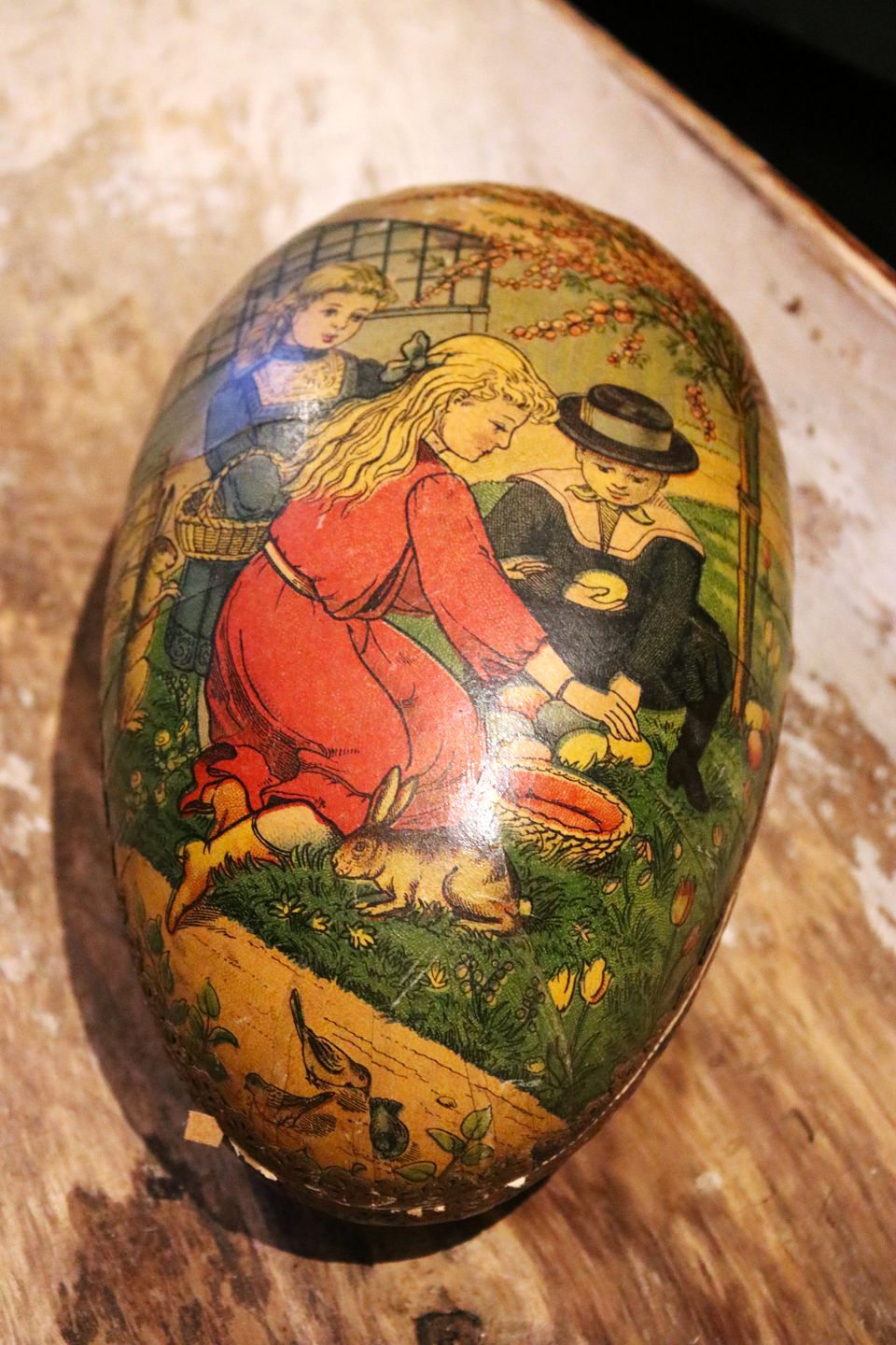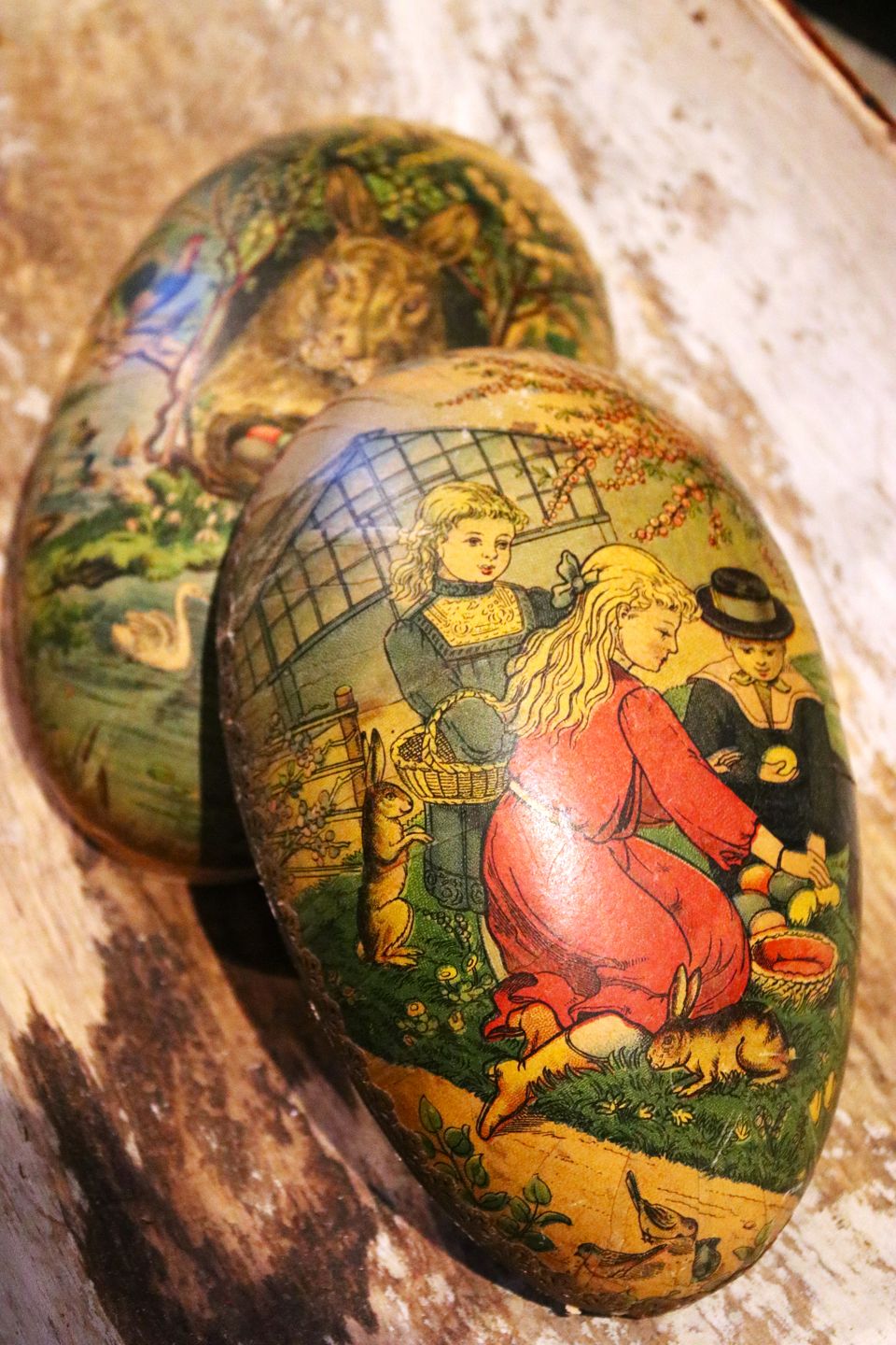 Vintage påskeæg i papmache fra begyndelsen af 1900 tallet