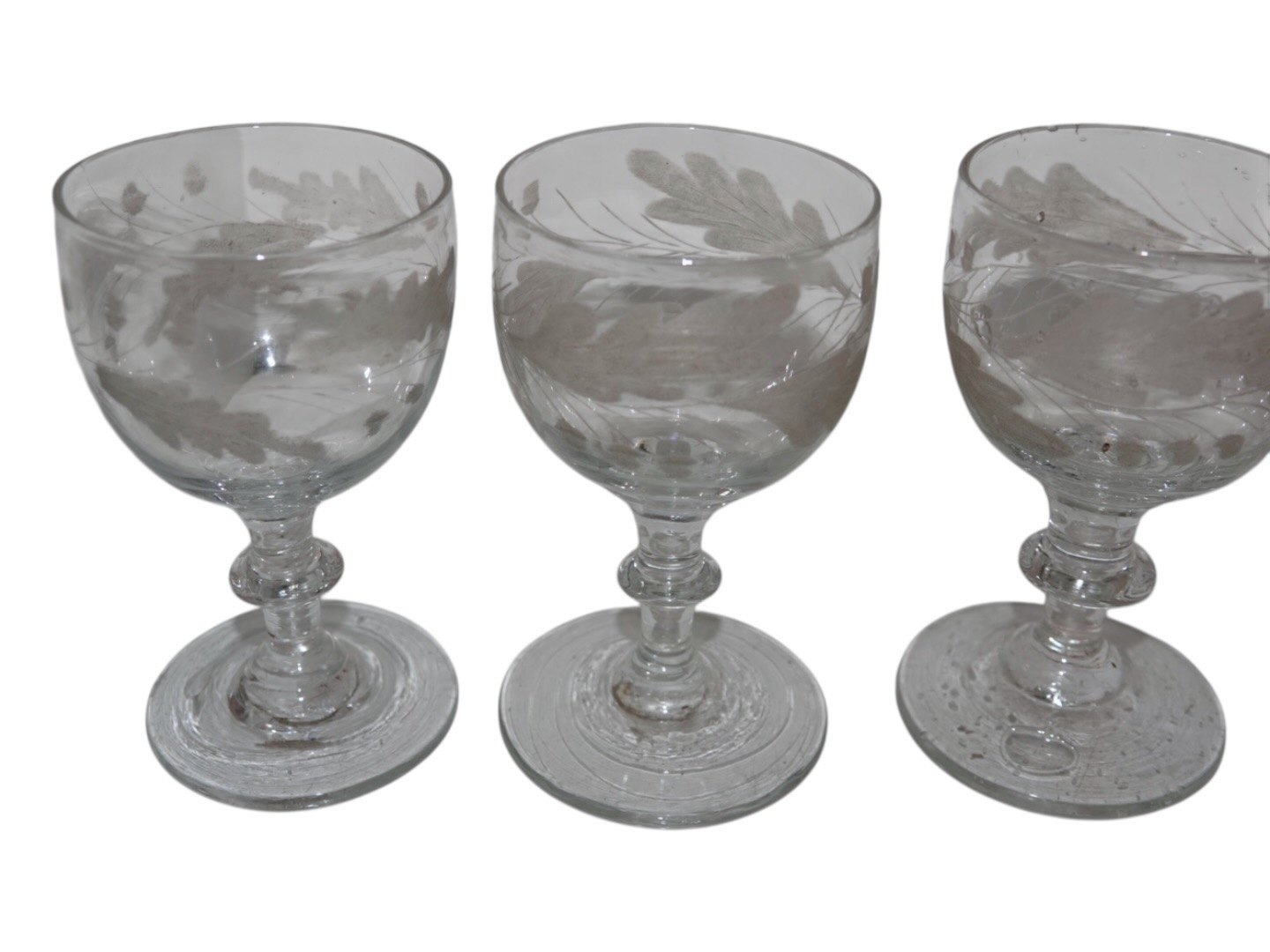 Stort portvinsglas med egeløvsslibninger.