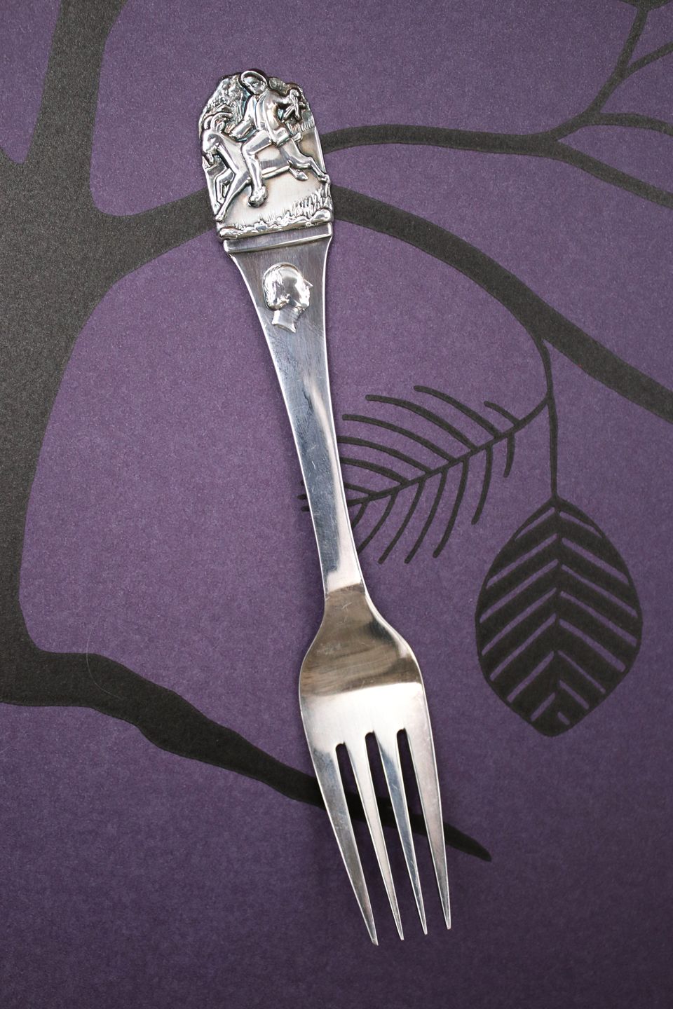Barnegaffel i sølv (stemplet) med børnemotiver